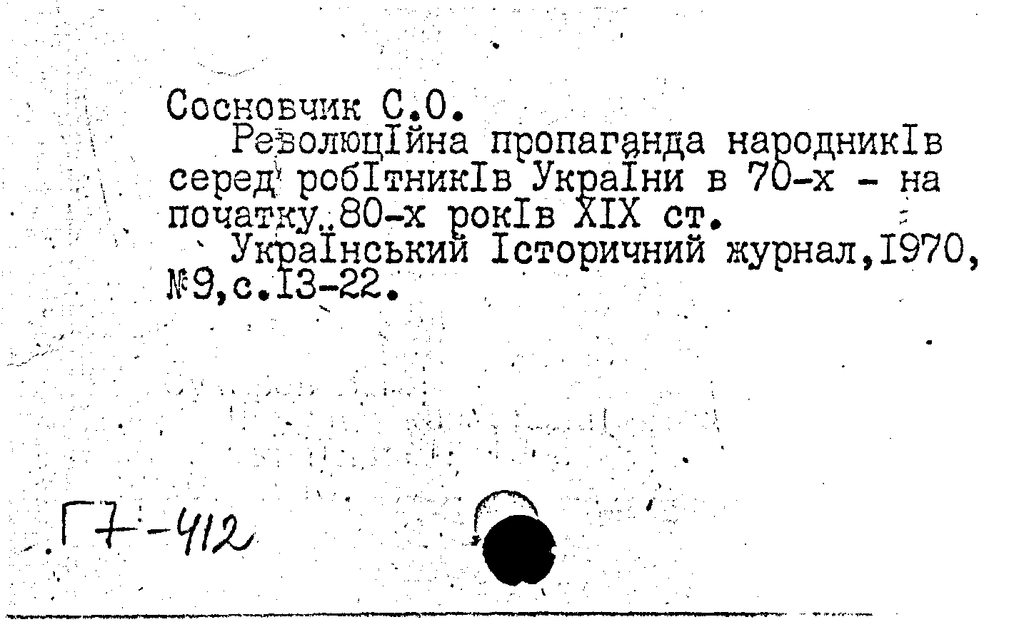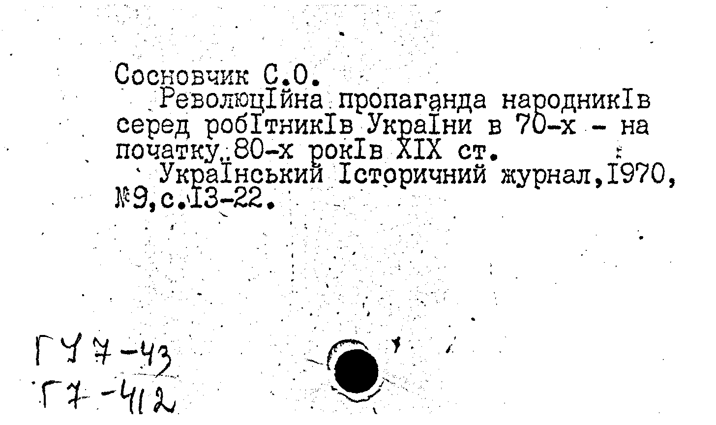 Революцiйна пропаганда народникiв серед робiтникiв Украiни в 70-х - на початку 80-х рокiв XIX ст.. Украiнський iсторичний журнал, N 9 1970: N 9 1970