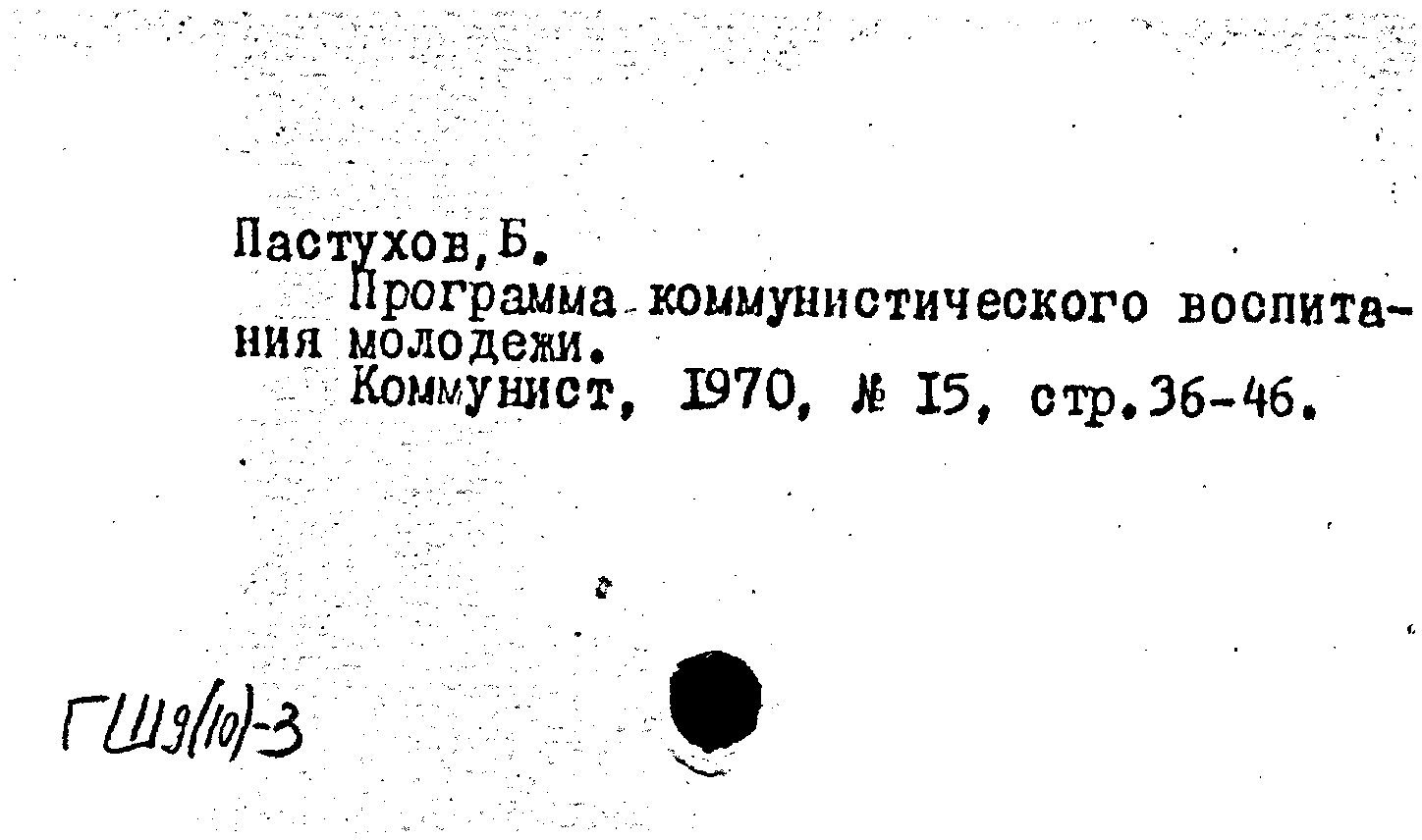Статья: Программа коммунистического воспитания молодежи. Коммунист, N 15 1970: N 15 1970