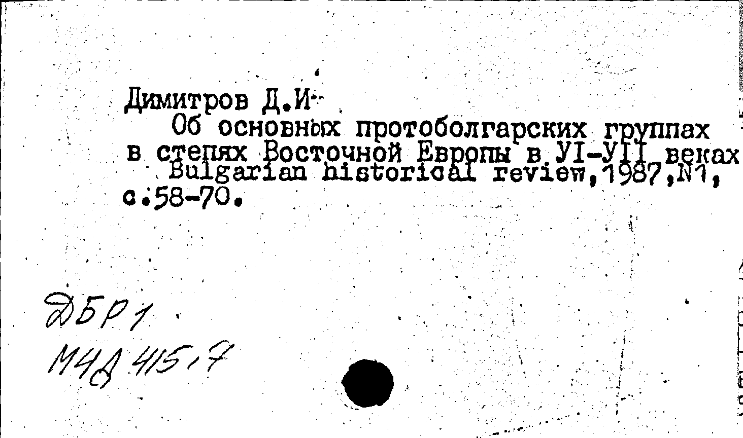 Об основных протоболгарских группах в степях Восточной Европы в VI-VII веках. Bulgarian historical review, N 1 1987: N 1 1987