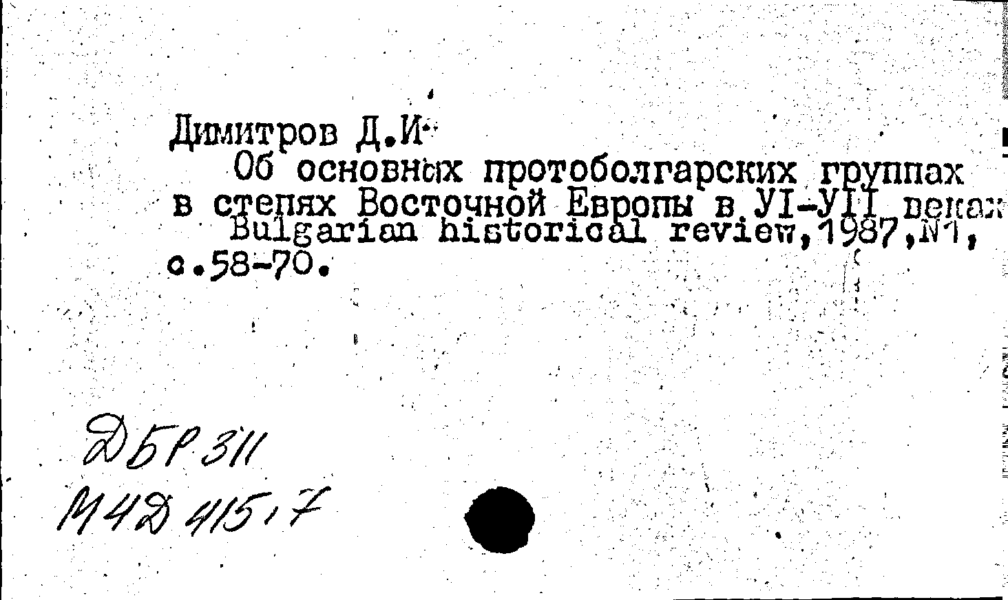 Статья: Об основных протоболгарских группах в степях Восточной Европы в VI-VII веках. Bulgarian historical review, N 1 1987: N 1 1987