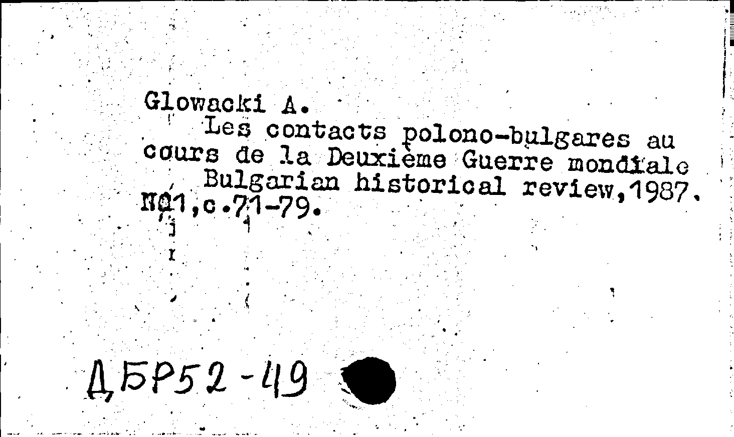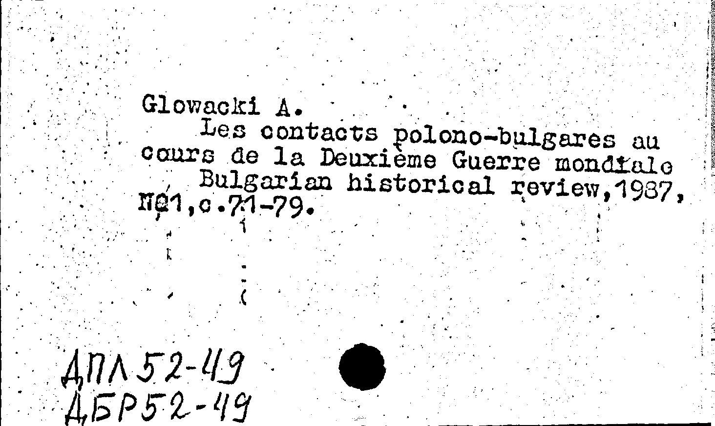 Les contacts polono-bulgares au cours de la Deuxieme Guerre mondiale. Bulgarian historical review, N 1 1987: N 1 1987