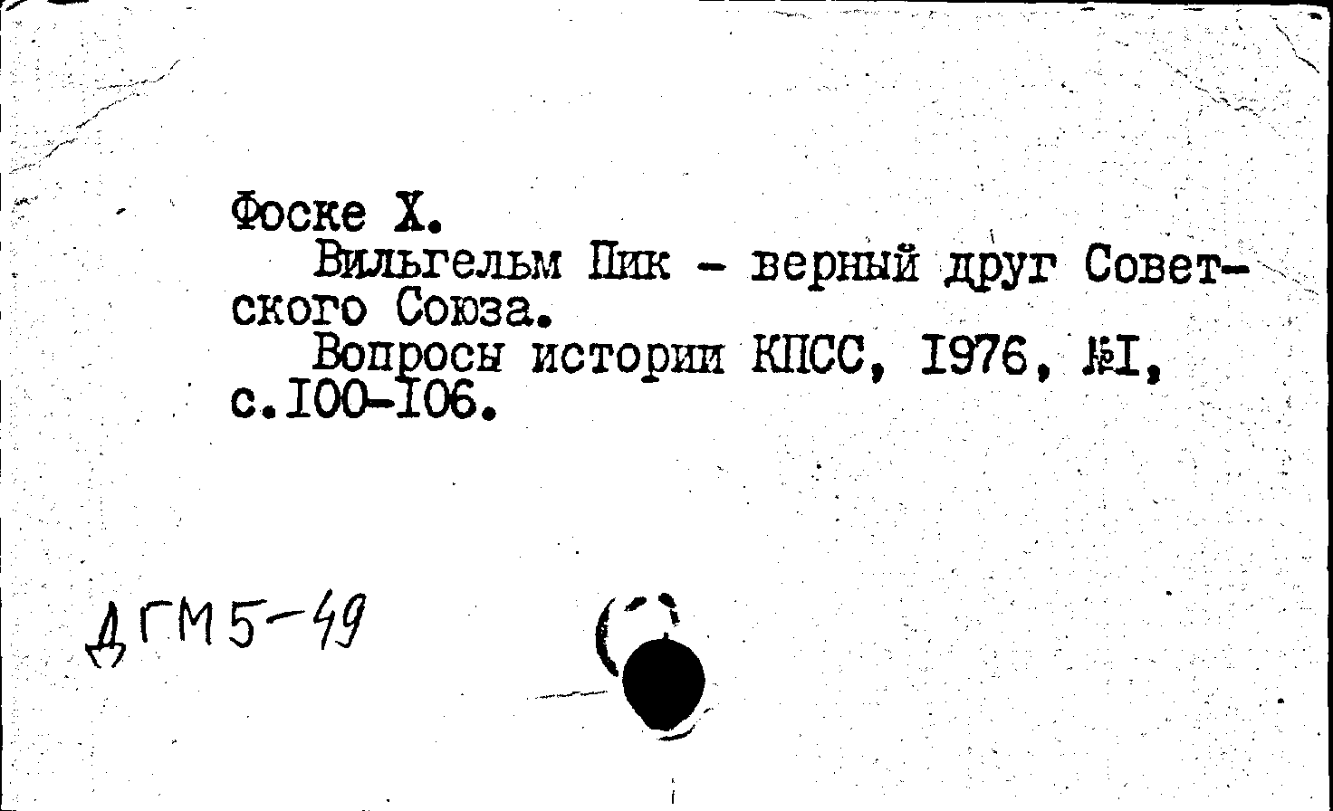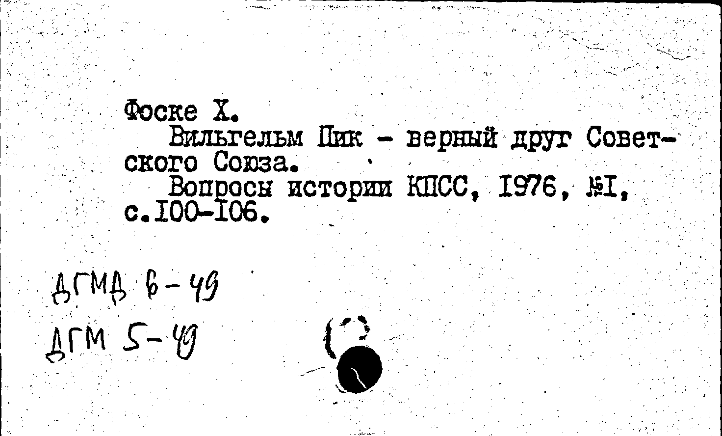 Статья: Вильгельм Пик - верный друг Советского Союза. Вопросы истории КПСС, N 1 1976: N 1 1976