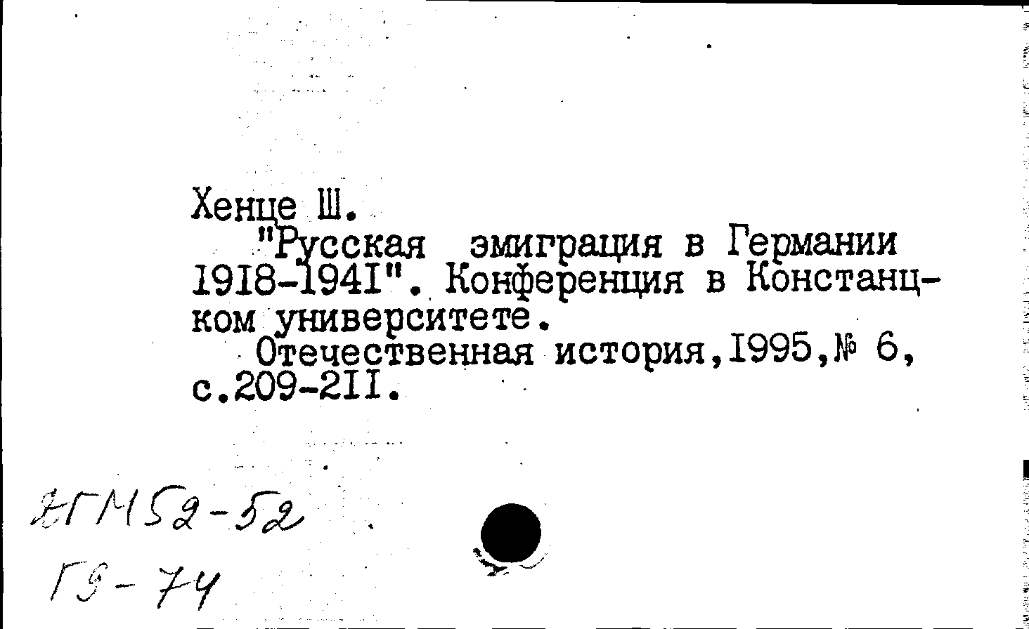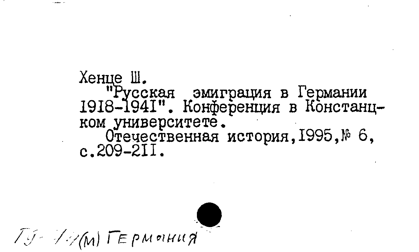 Статья: "Русская эмиграция в Германии 1918-1941": конференция в Констанцком университет. Отечественная история, № 6 /1995: № 6 /1995