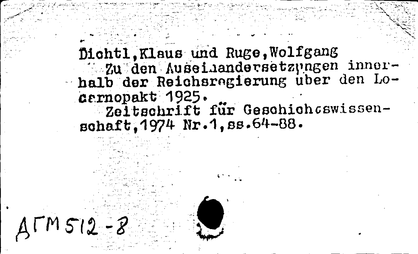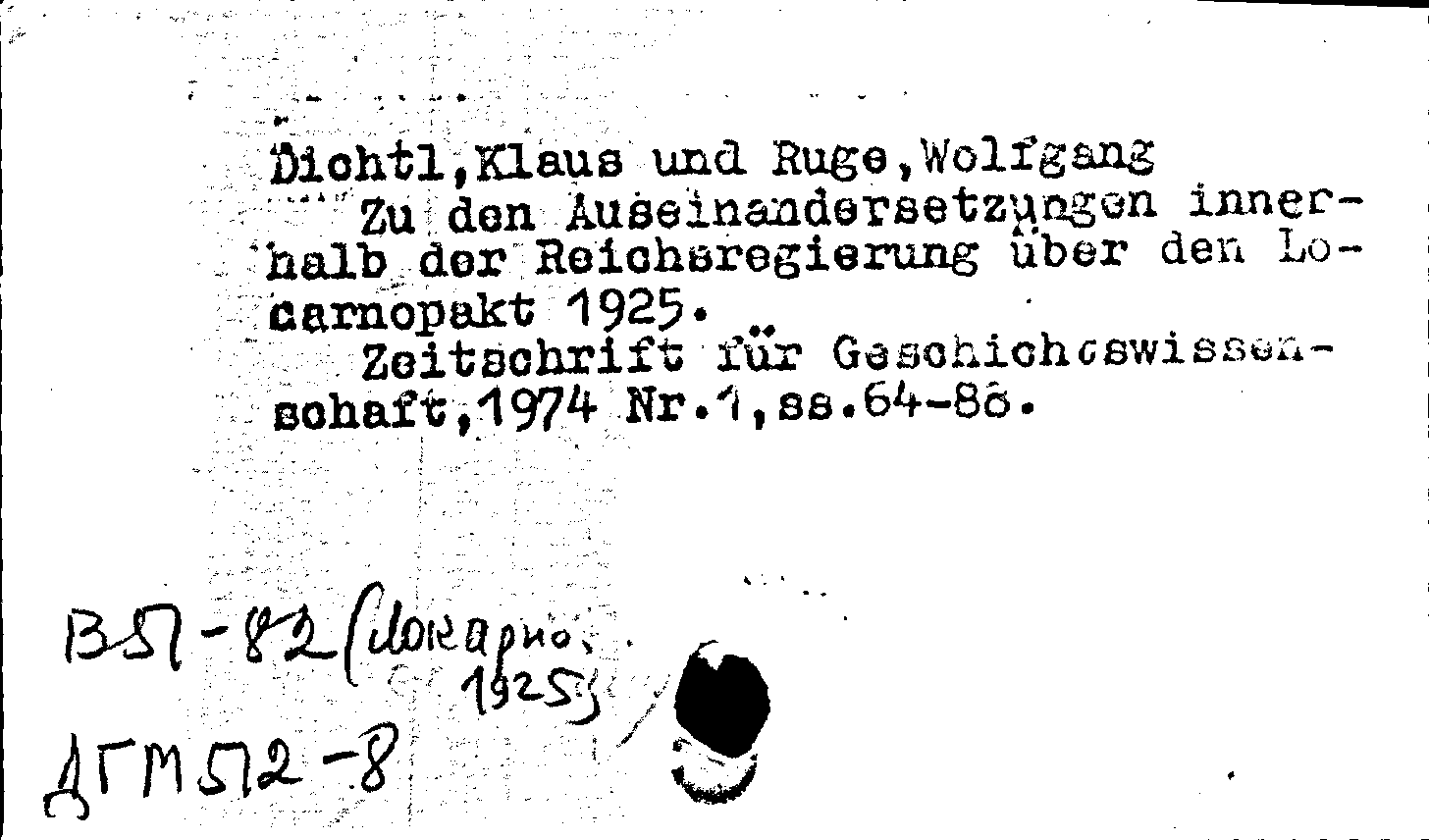 Статья: Zu den Auseinandersetzungen innerhalb der Reichsregierung uber den Locarnopakt 1925. Zeitschrift fur Geschichtswissenschaft, N 1 1974: N 1 1974