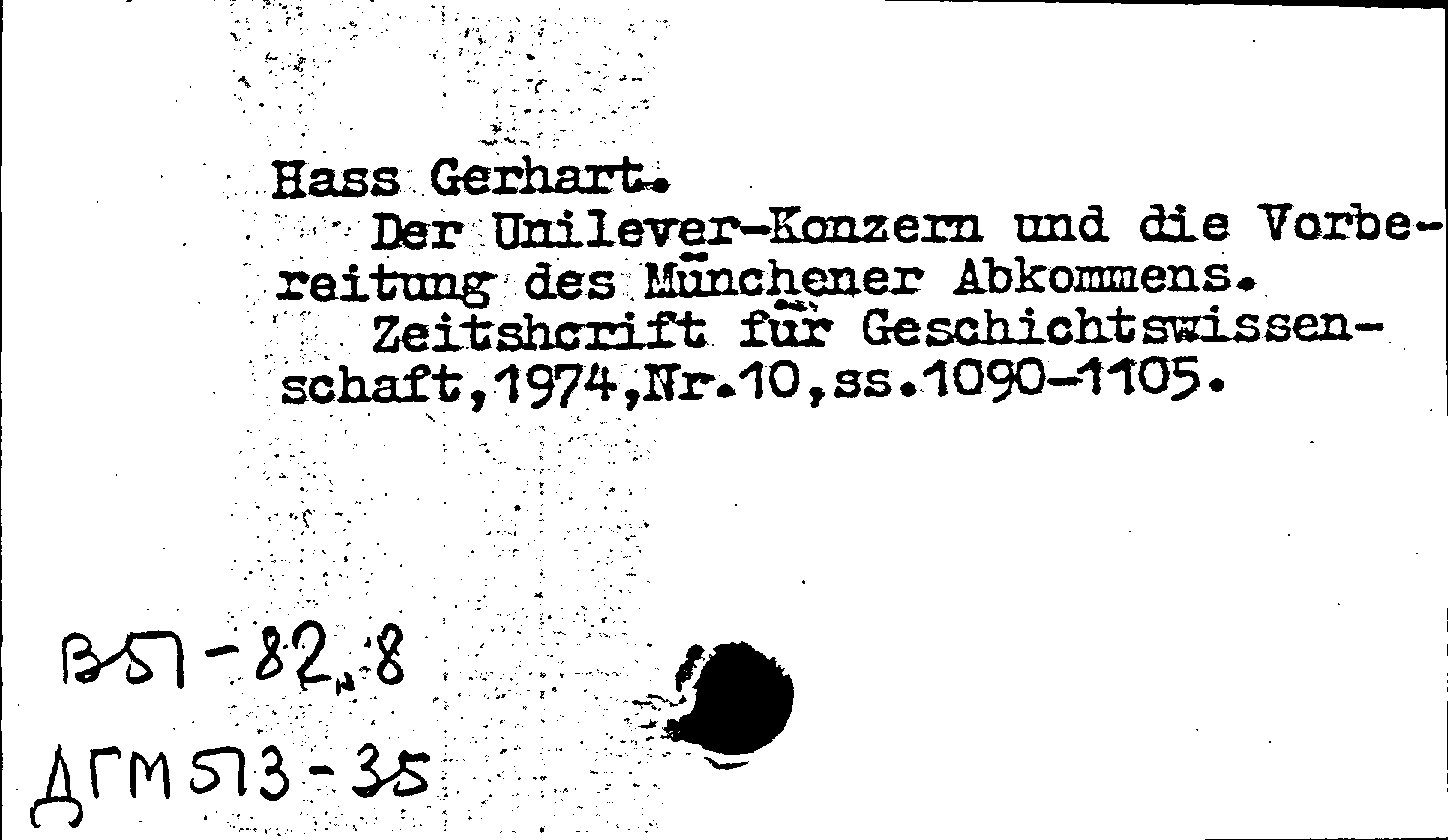 Статья: Der Unilever-Konzern und die Vorbereitung des Munchener Abkommens. Zeitschrift fur Geschichtswissenschaft, N 10 1974: N 10 1974