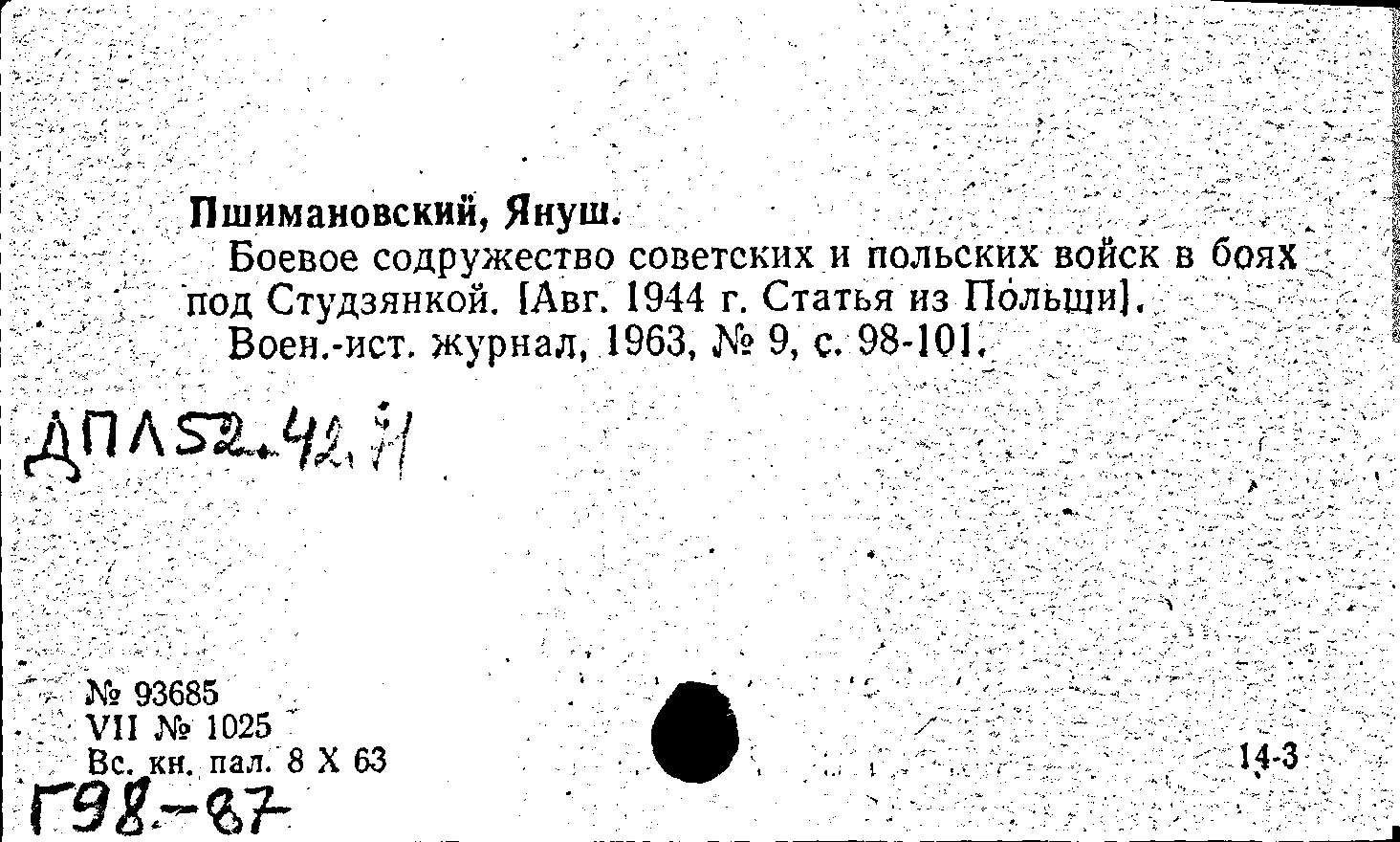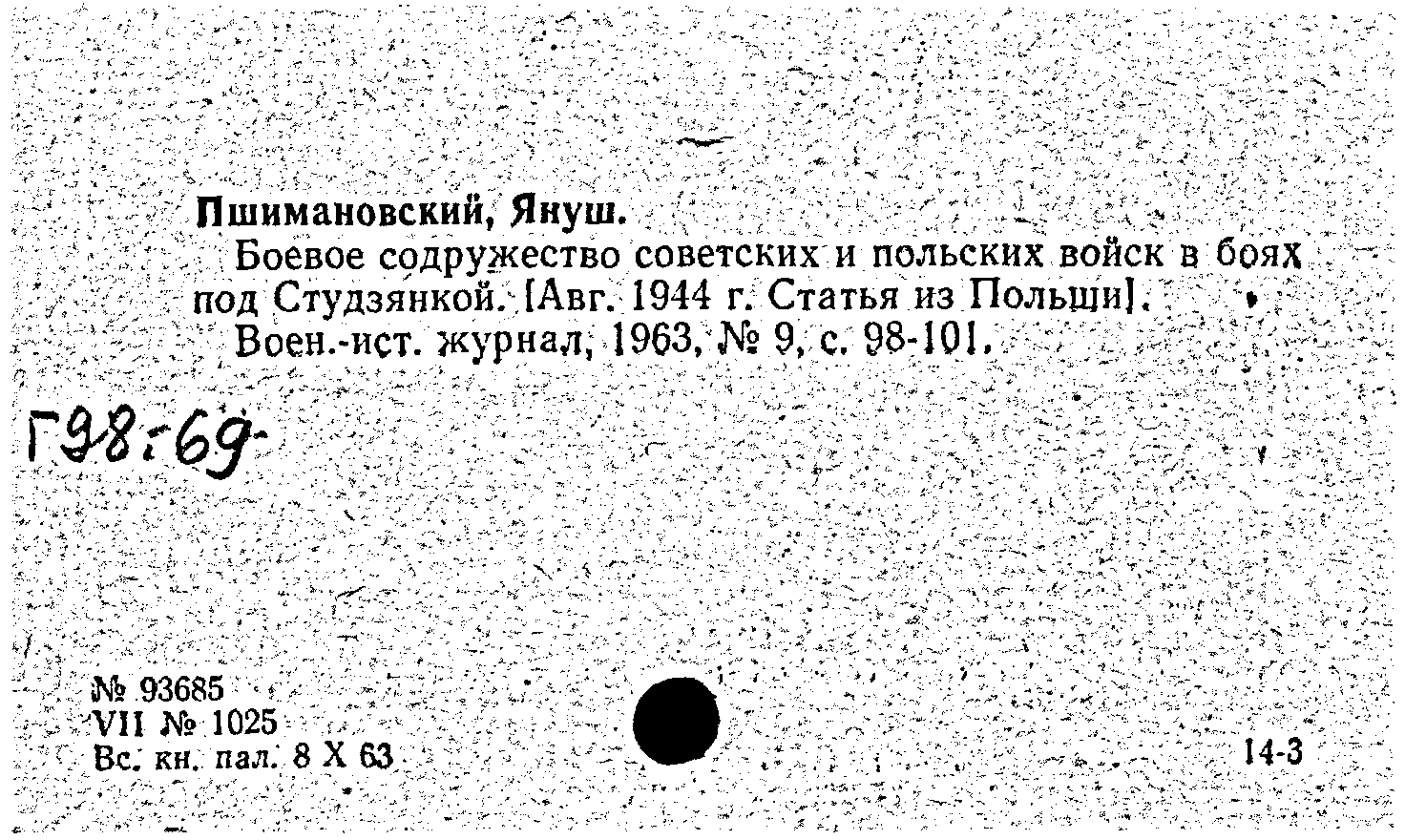 Статья: Боевое содружество советских и польских войск в боях под Студзянкой. Военно-исторический журнал, N 9 1963: N 9 1963