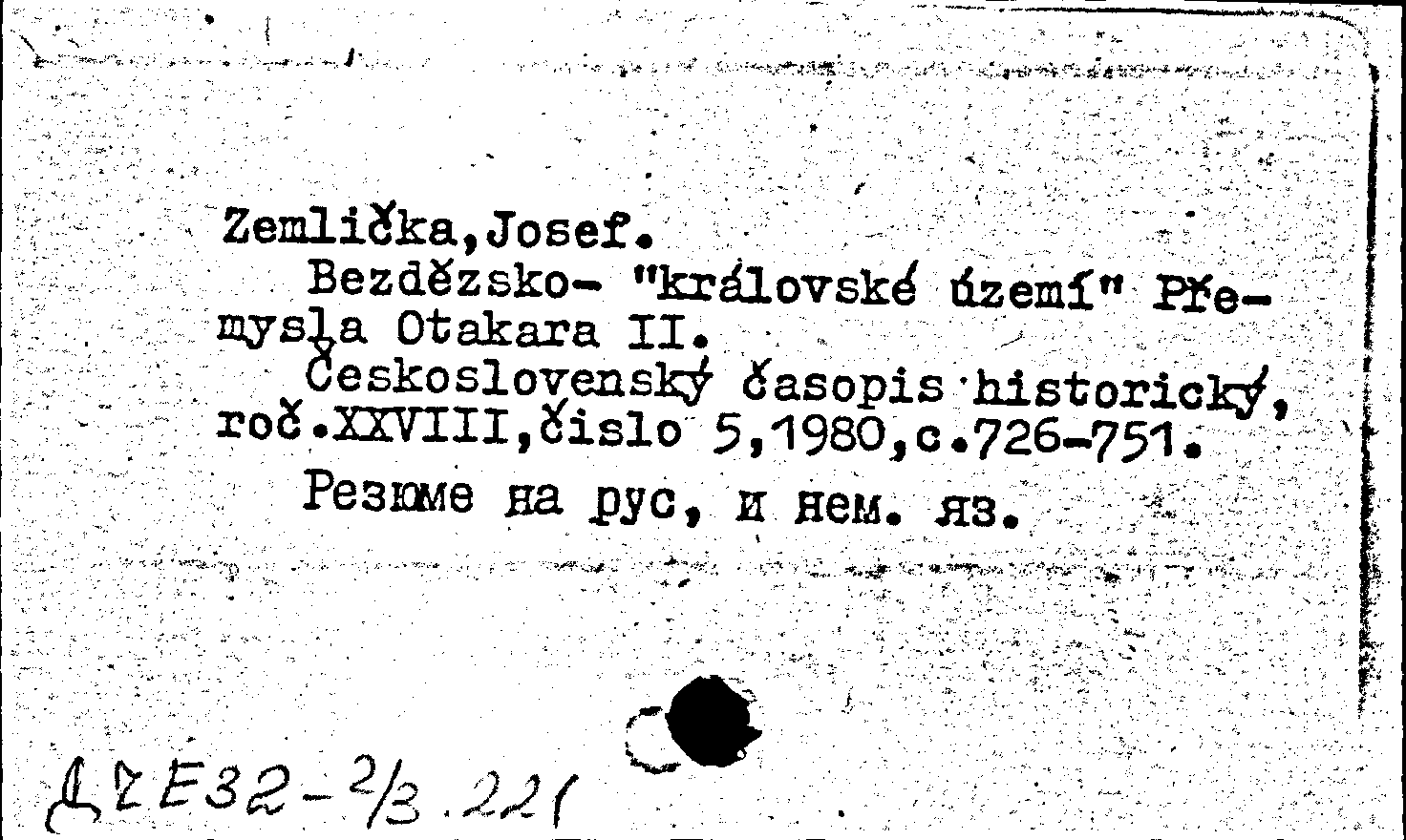 Bezdezsko - "kralovske dzemi" Premysla Otakara II.. Ceskoslovensky casopis historicky, Roc. 28, cislo 5 1980: Roc. 28, cislo 5 1980
