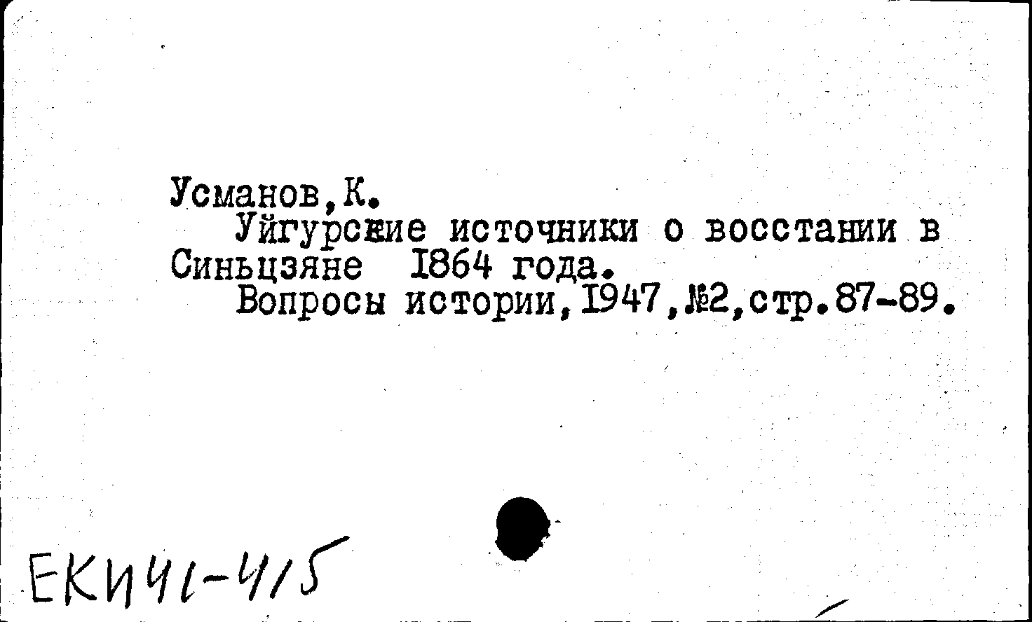 Статья: Уйгурские источники о восстании в Синьцзяне 1864 года. Вопросы истории, № 2 /1947: № 2 /1947