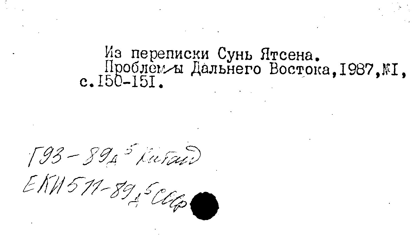 Статья: Из переписки Сунь Ятсена. Проблемы Дальнего Востока, N 1 1987: N 1 1987