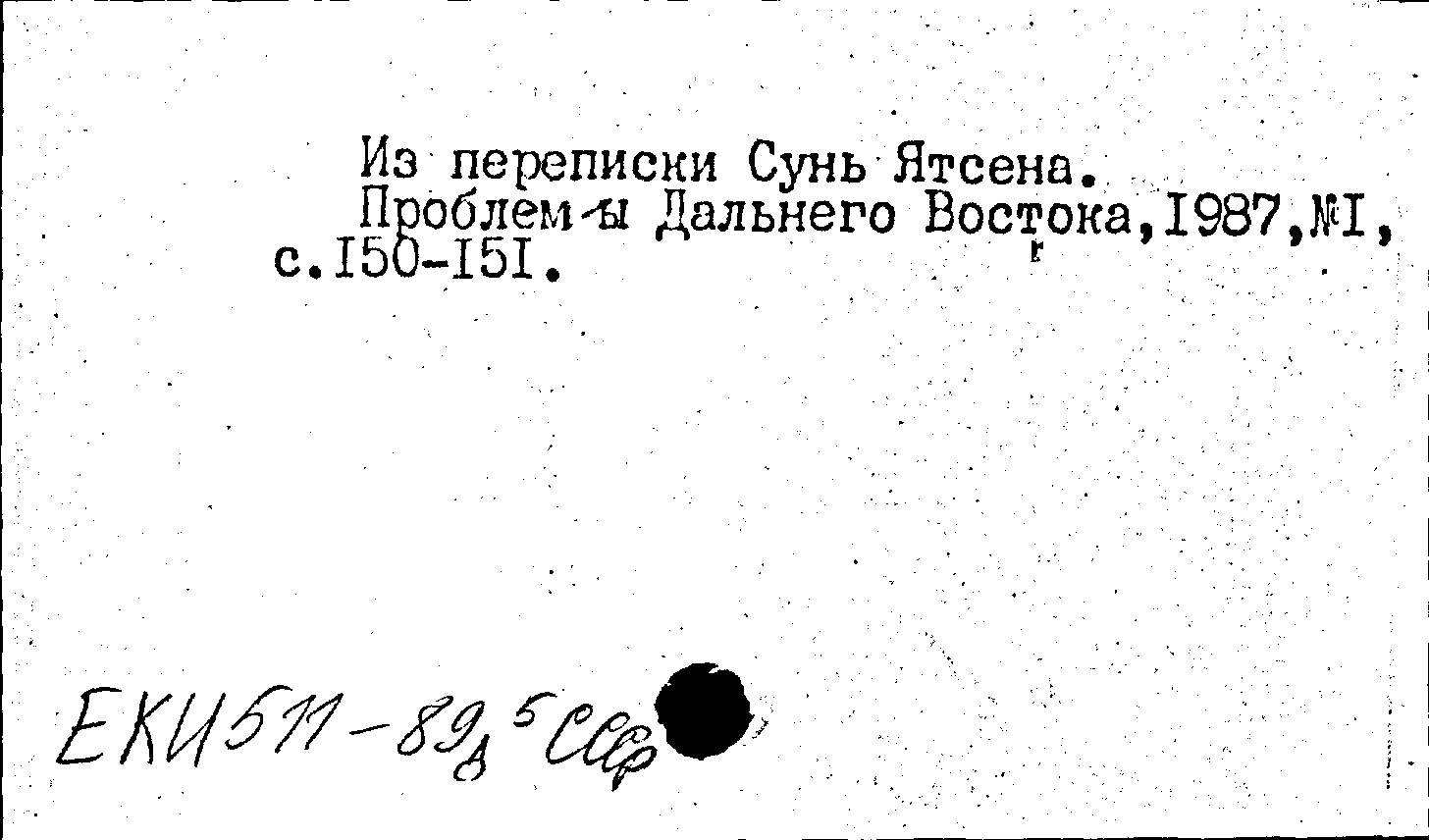 Из переписки Сунь Ятсена. Проблемы Дальнего Востока, N 1 1987: N 1 1987