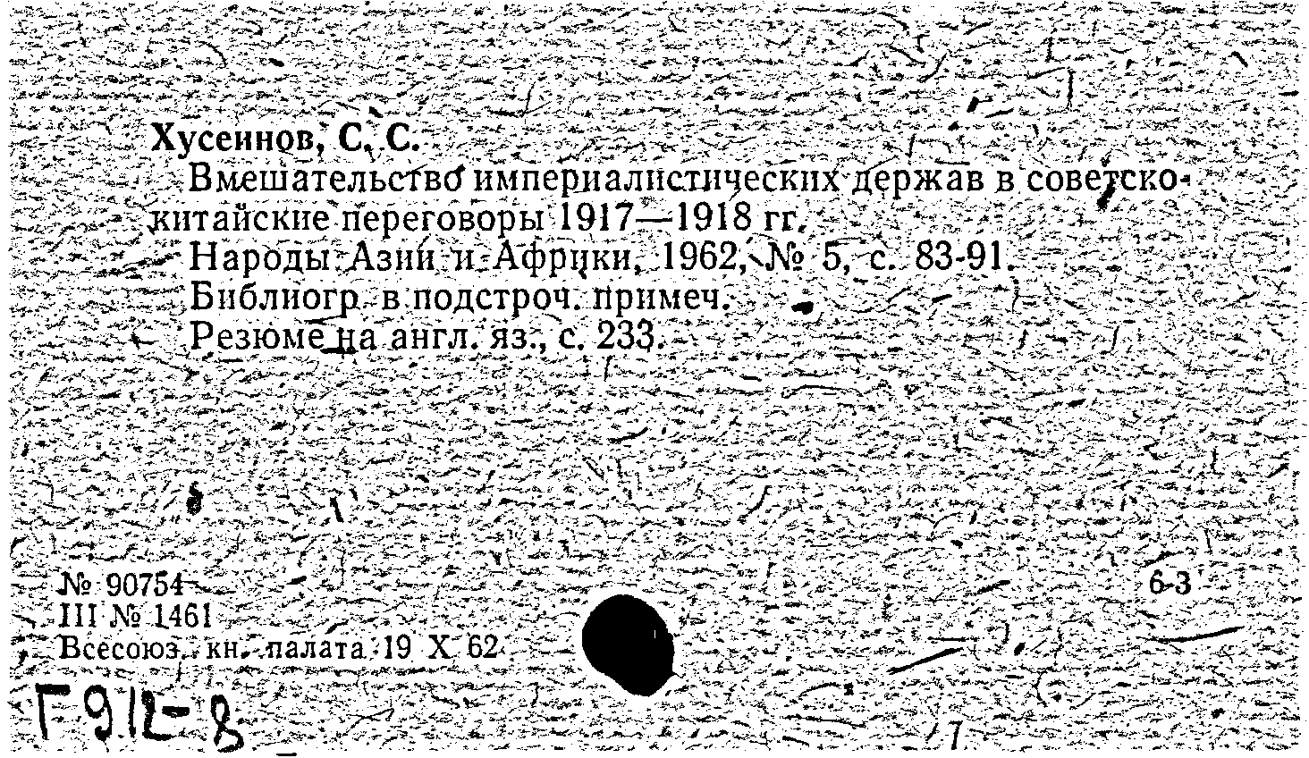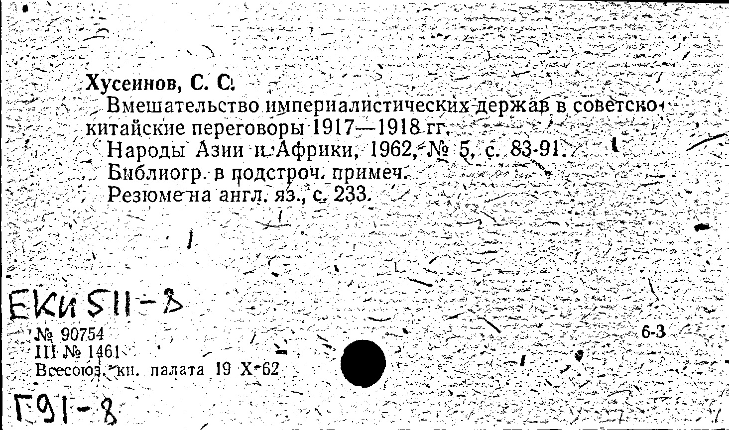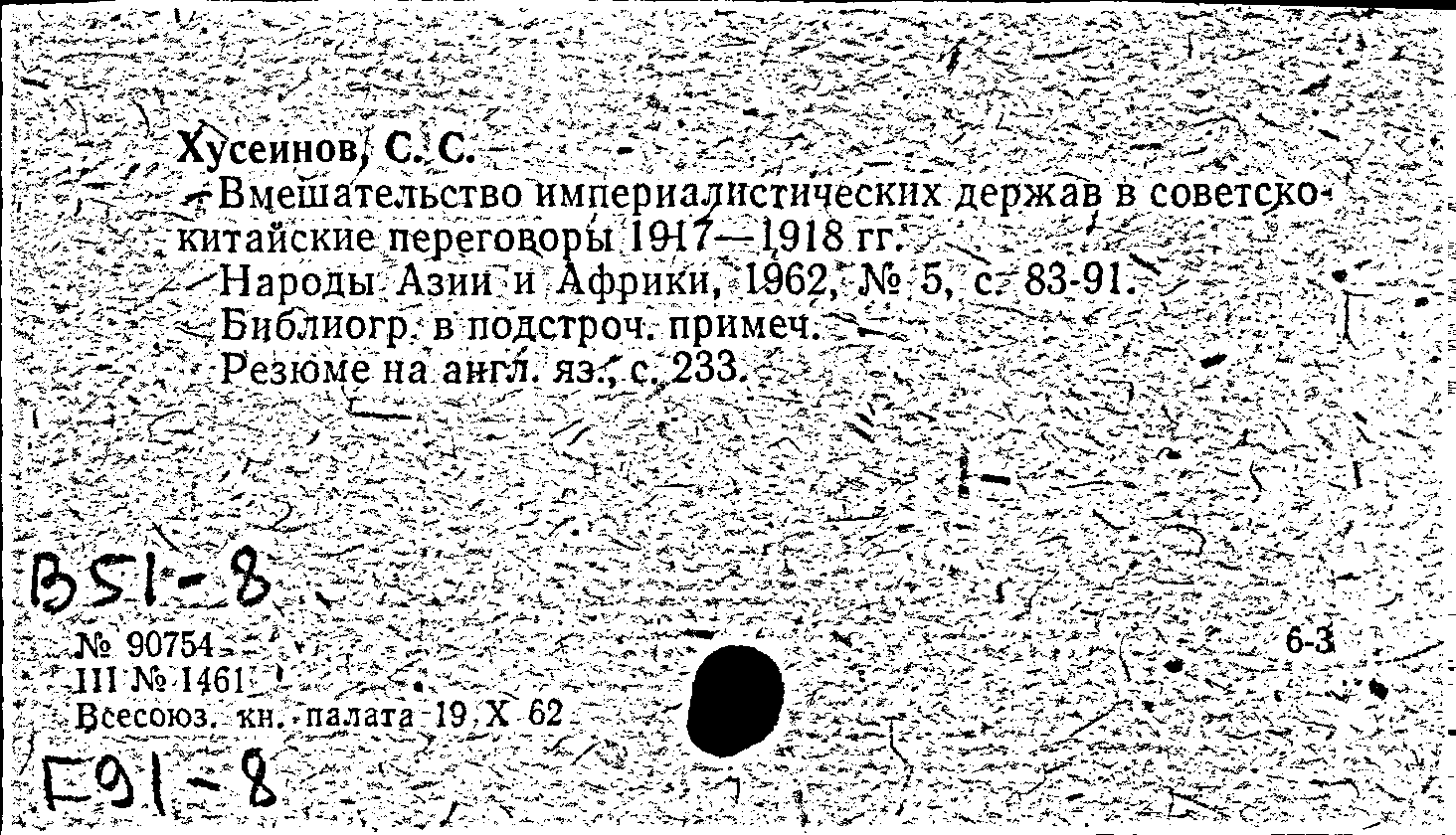 Статья: Вмешательство империалистических держав в советско-китайские переговоры 1917-1918 гг.. Народы Азии и Африки, N 5 1962: N 5 1962
