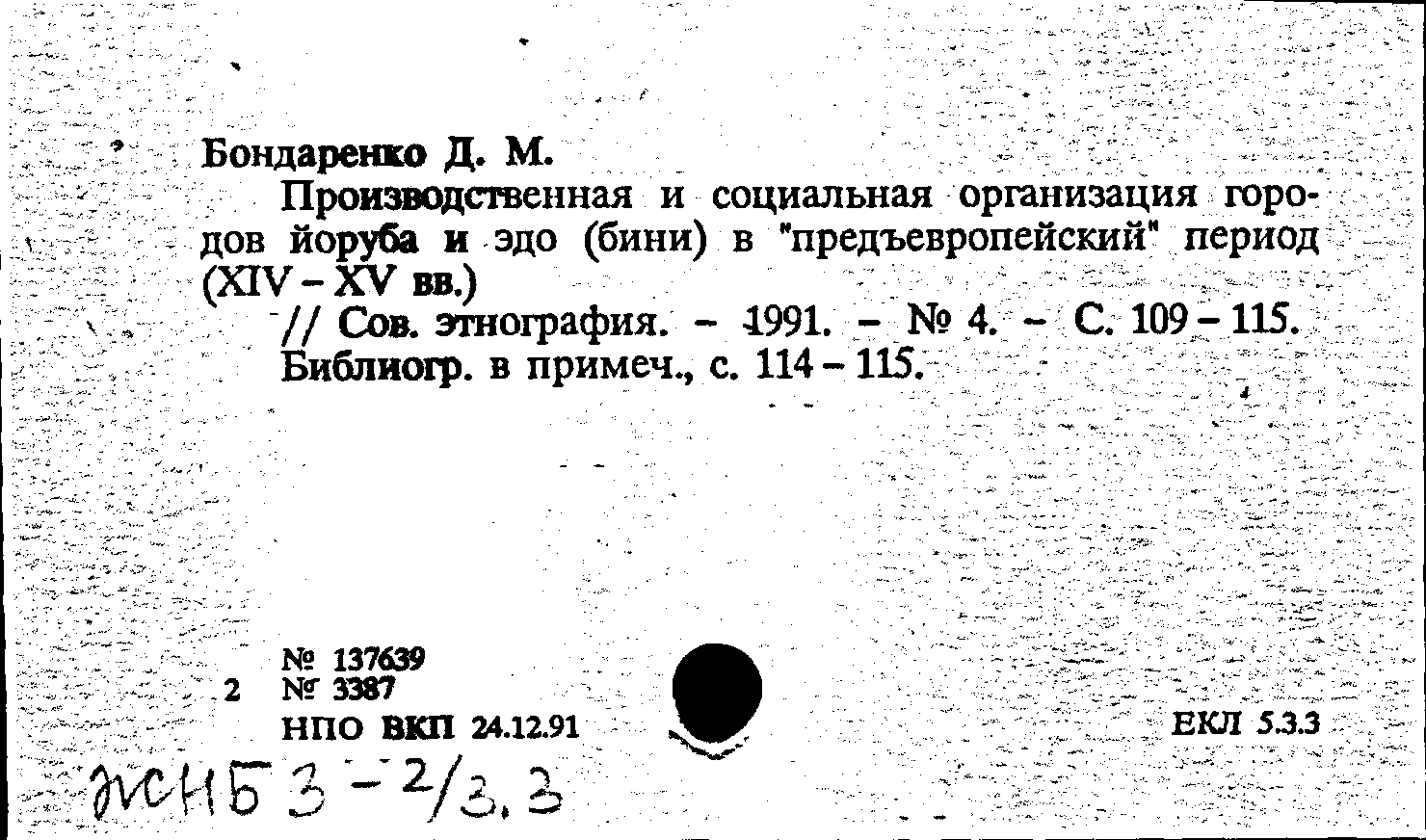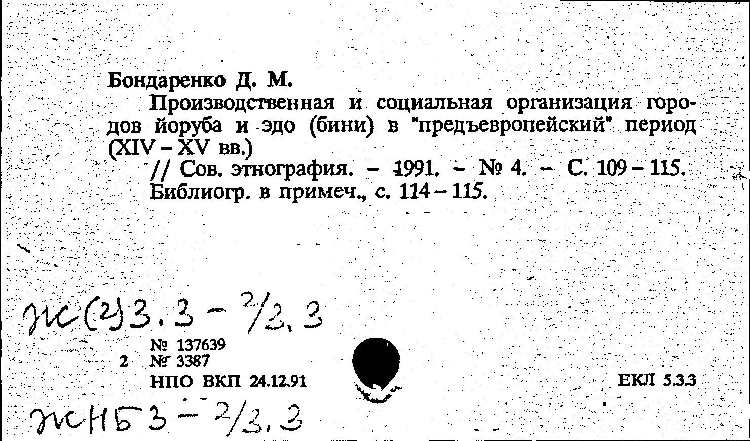 Статья: Производственная и социальная организация городов йоруба и эдо (бини) в "предъевропейский" период (XIV-XV вв.). Советская этнография, № 4 /1991: № 4 /1991