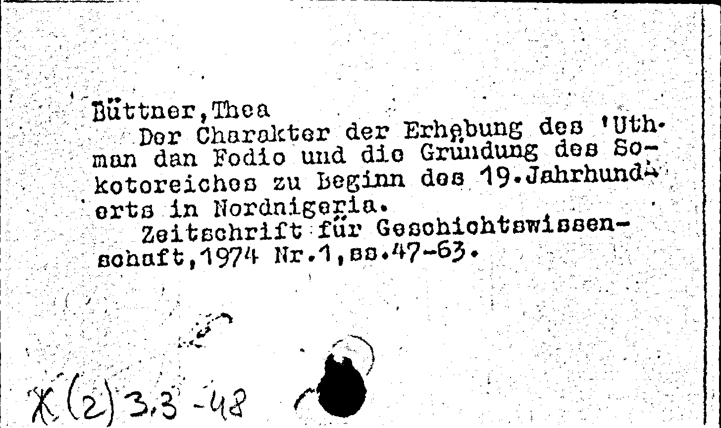 Статья: Der Charakter der Erhebung des "Uthman dan Fodio und die Grudung des Sokotoreiches zu Beginn des 19. Jahrhunderts in Nordnigeria. Zeitschrift fur Geschichtswissenschaft, N 1 1974: N 1 1974