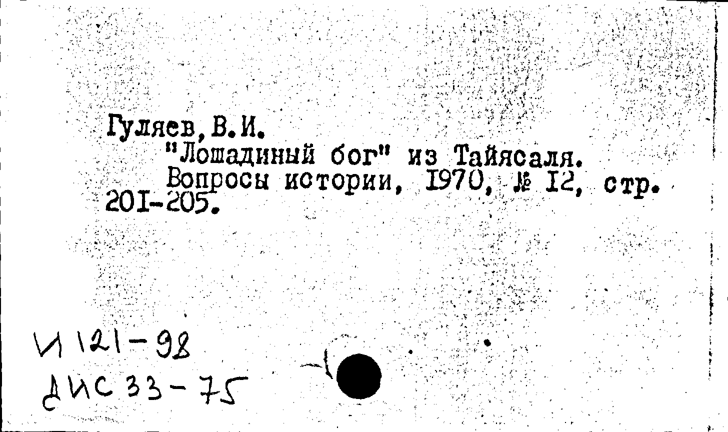 "Лошадиный бог" из Тайясаля. Вопросы истории, № 12 /1970: № 12 /1970