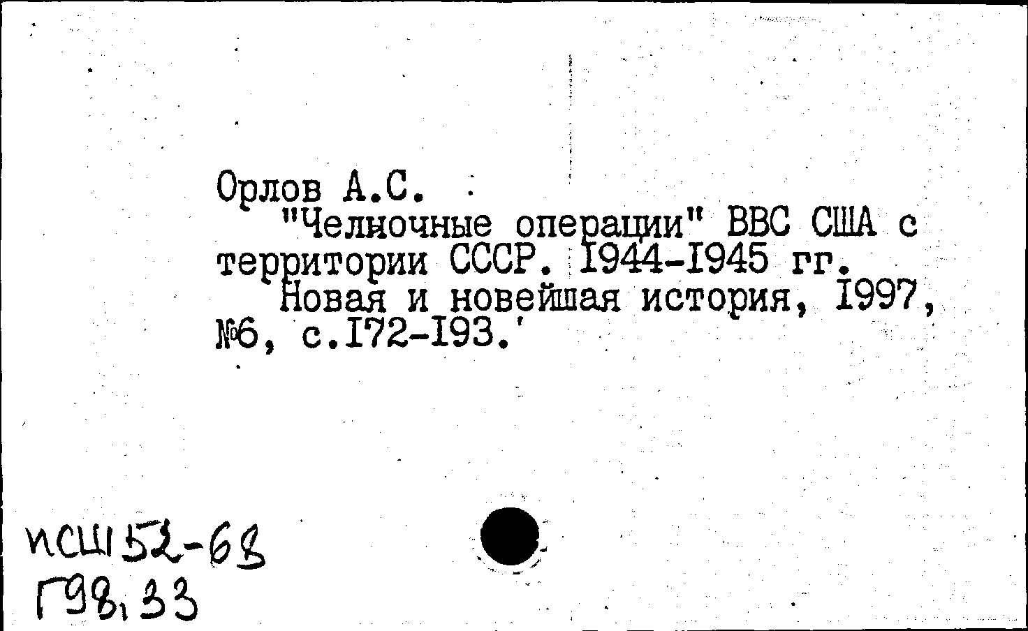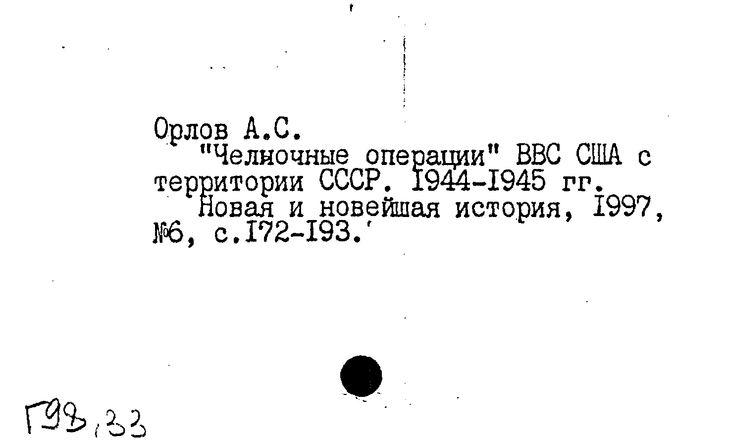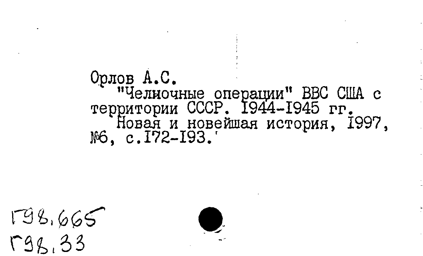"Челночные операции" ВВС США с территории СССР. 1944-1945 гг.. Новая и новейшая история, N 6 1997: N 6 1997