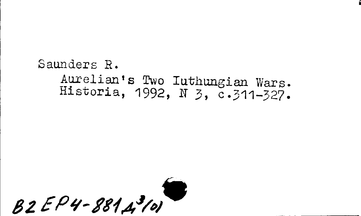 Aurelian's Two Iuthungian Wars. Historia, N 3 1992: N 3 1992