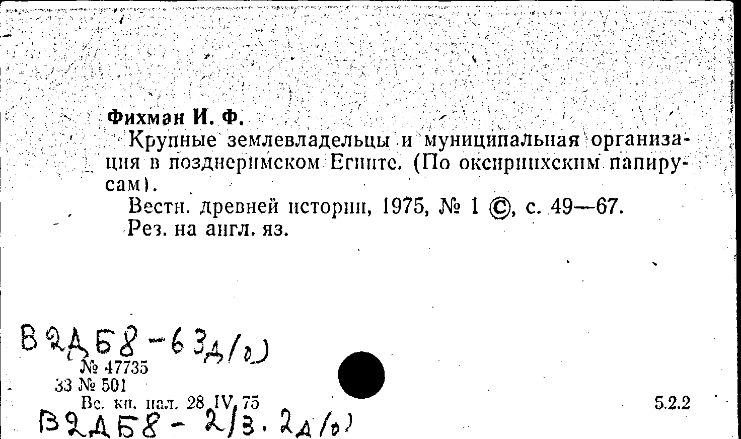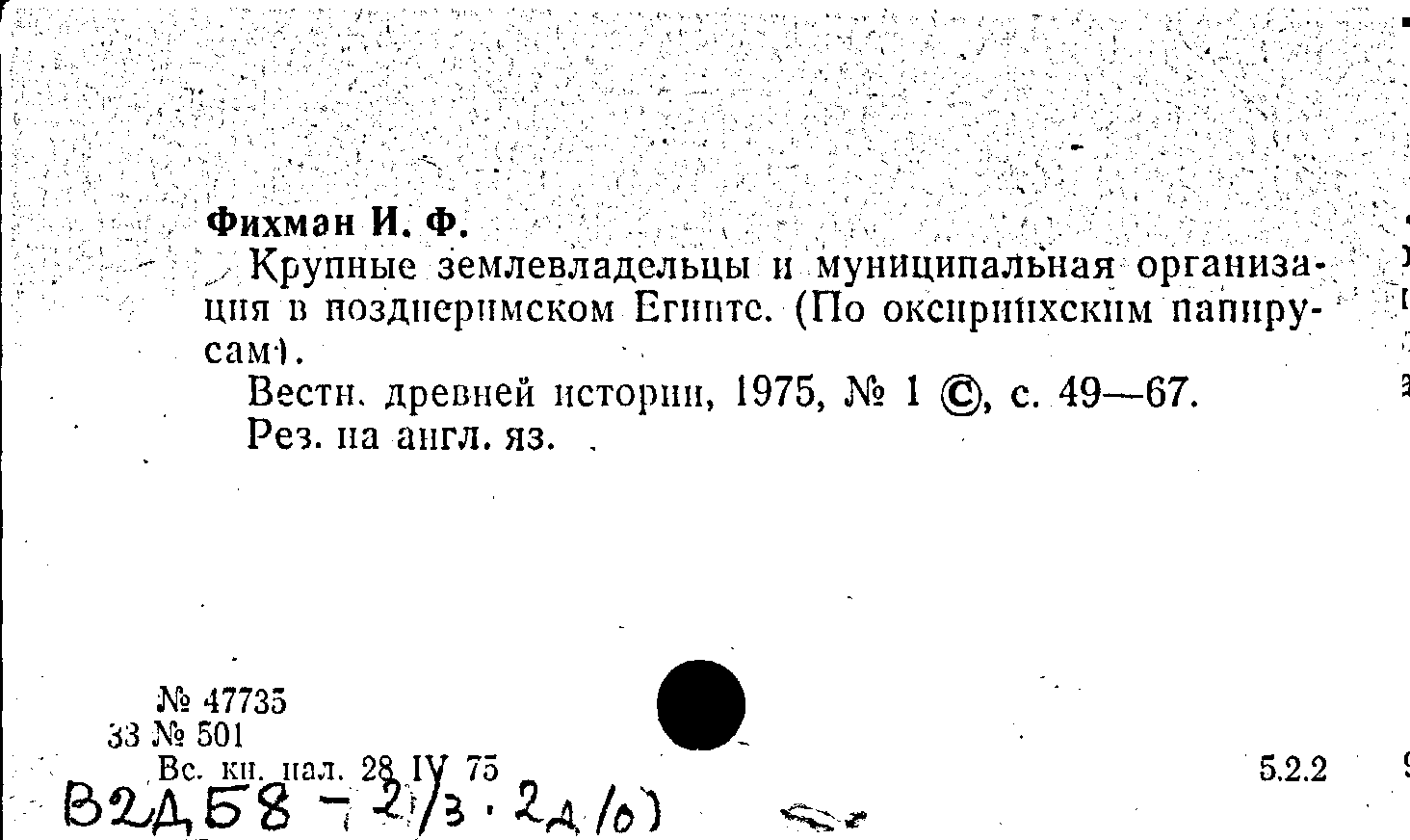 Крупные землевладельцы и муниципальная организация в позднеримском Египте (по оксиринхским папирусам). Вестник древней истории, № 1 (131) /1975: № 1 (131) /1975