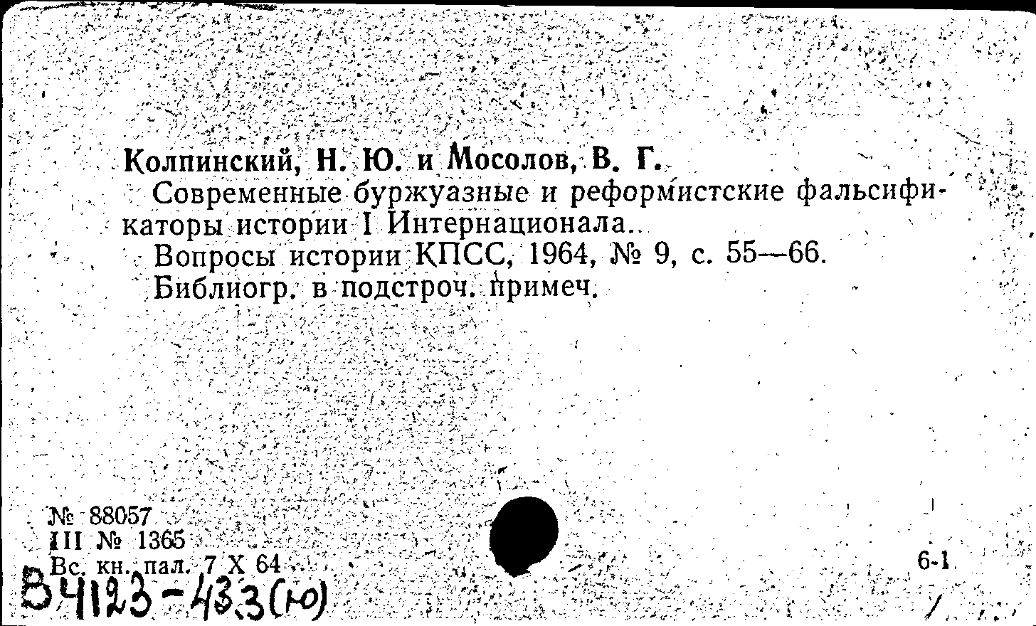 Статья: Современные буржуазные и реформистские фальсификаторы истории I Интернационала. Вопросы истории КПСС, N 9 1964: N 9 1964