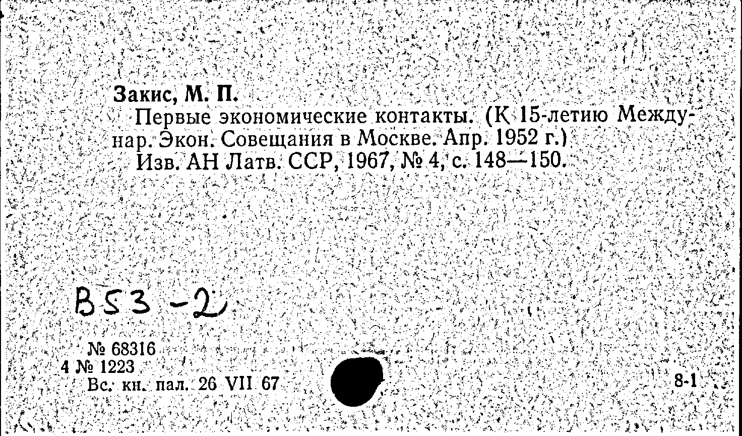 Статья: Первые экономические контакты. Известия Академии наук Латвийской ССР, N 4 1967: N 4 1967