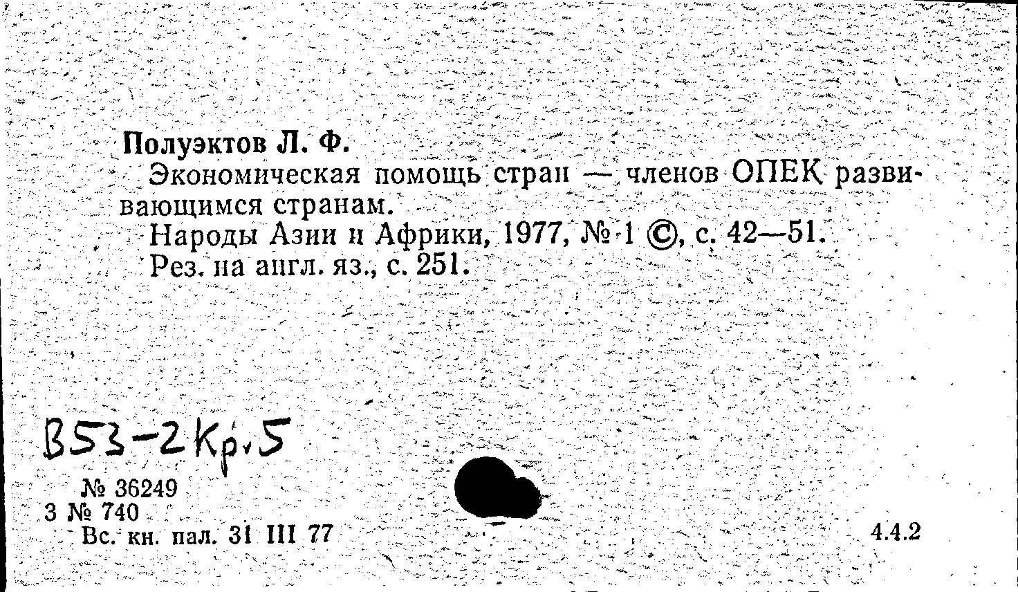 Экономическая помощь стран - членов ОПЕК развивающимся странам. Народы Азии и Африки, N 1 1977: N 1 1977