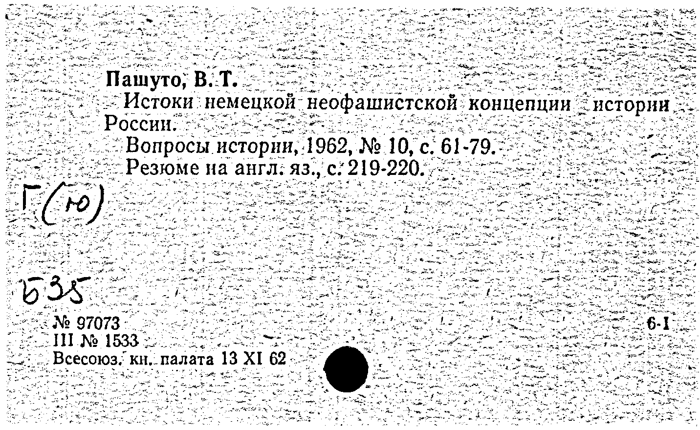 Истоки немецкой неофашистской концепции истории России. Вопросы истории, № 10 /1962: № 10 /1962