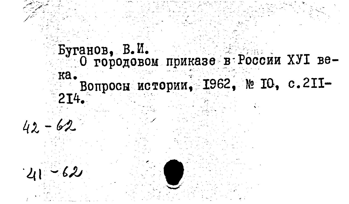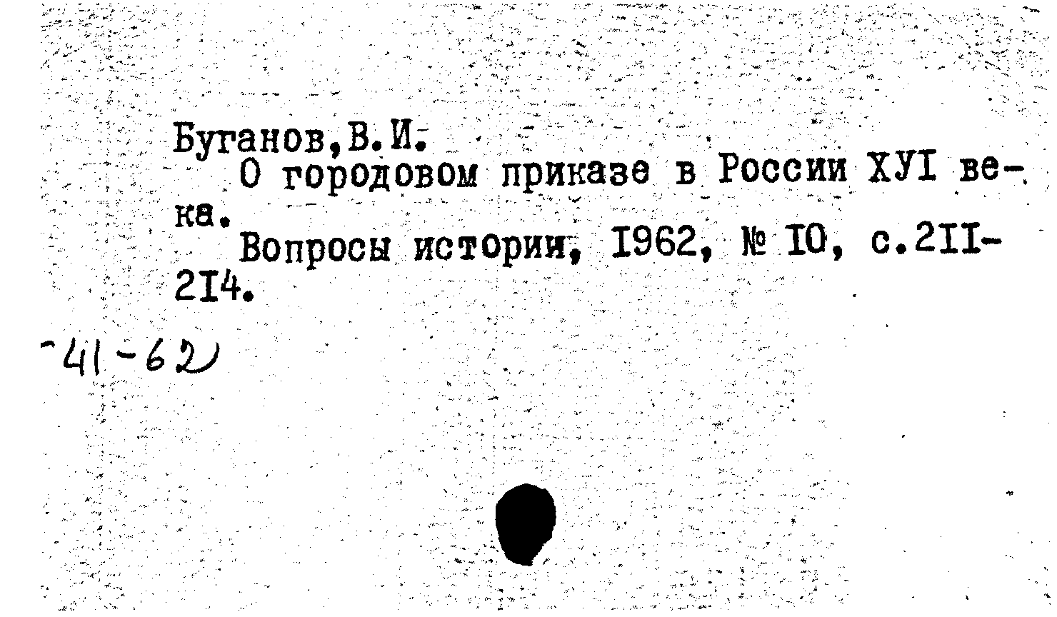 Статья: О городовом приказе в России XVI века. Вопросы истории, № 10 /1962: № 10 /1962