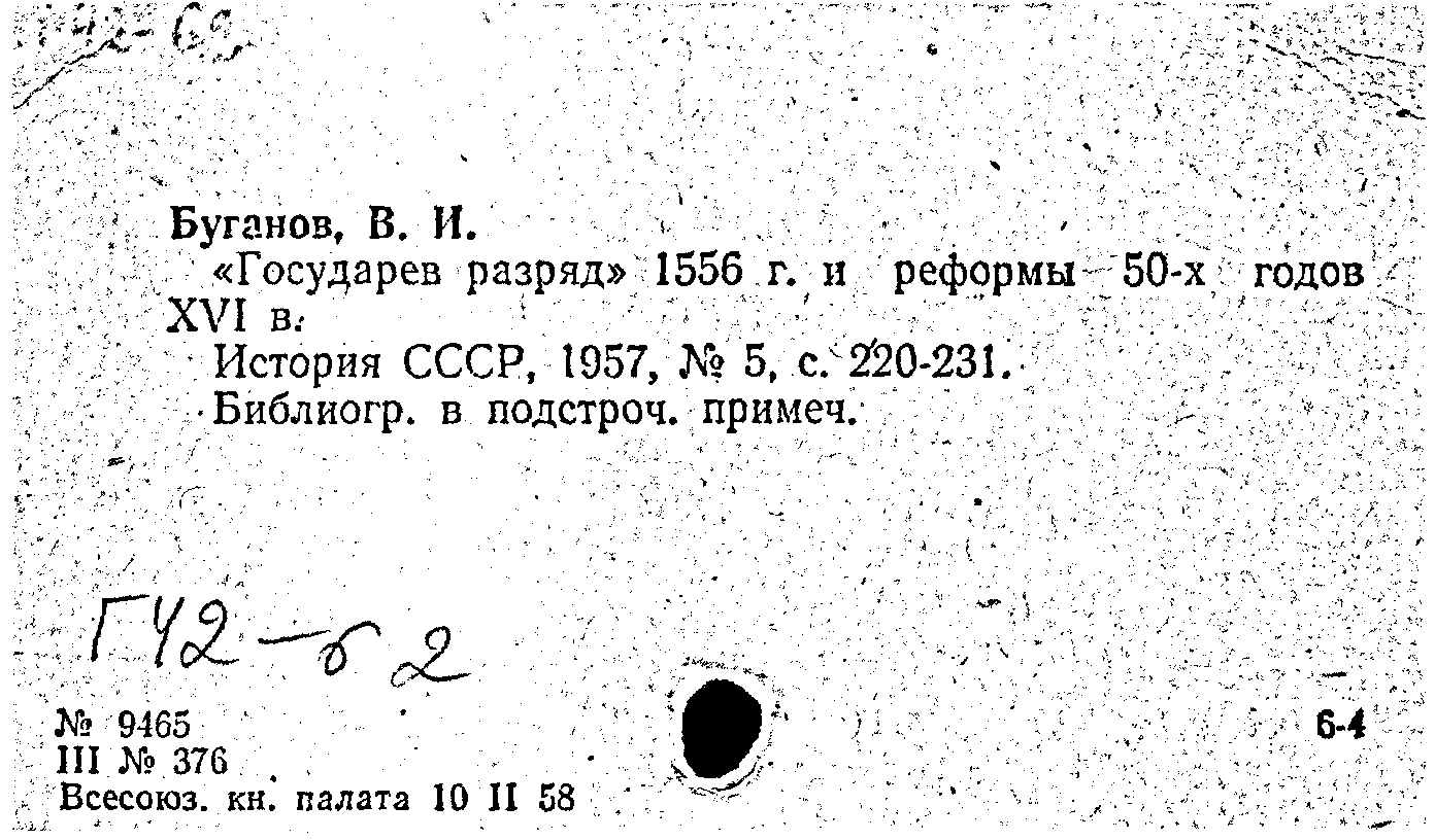 Статья: "Государев разряд" 1556 г. и реформы 50-х годов XVI в.. История СССР, № 5 /1957: № 5 /1957
