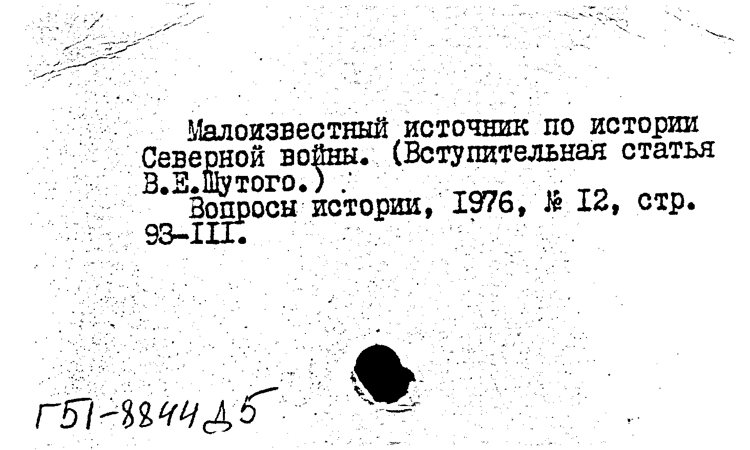 Статья: Малоизвестный источник по истории Северной войны. Вопросы истории, № 12 /1976: № 12 /1976
