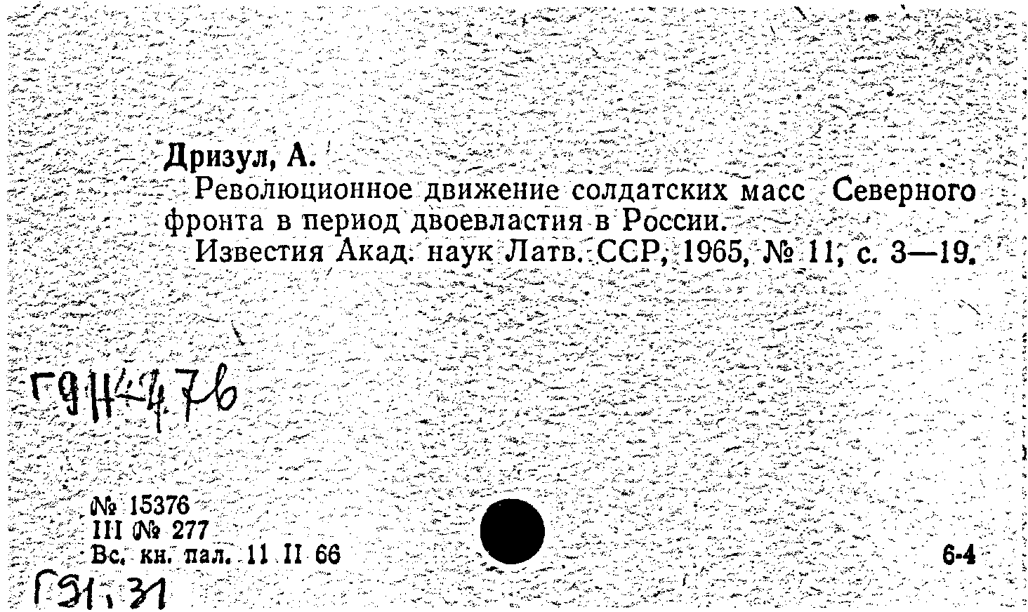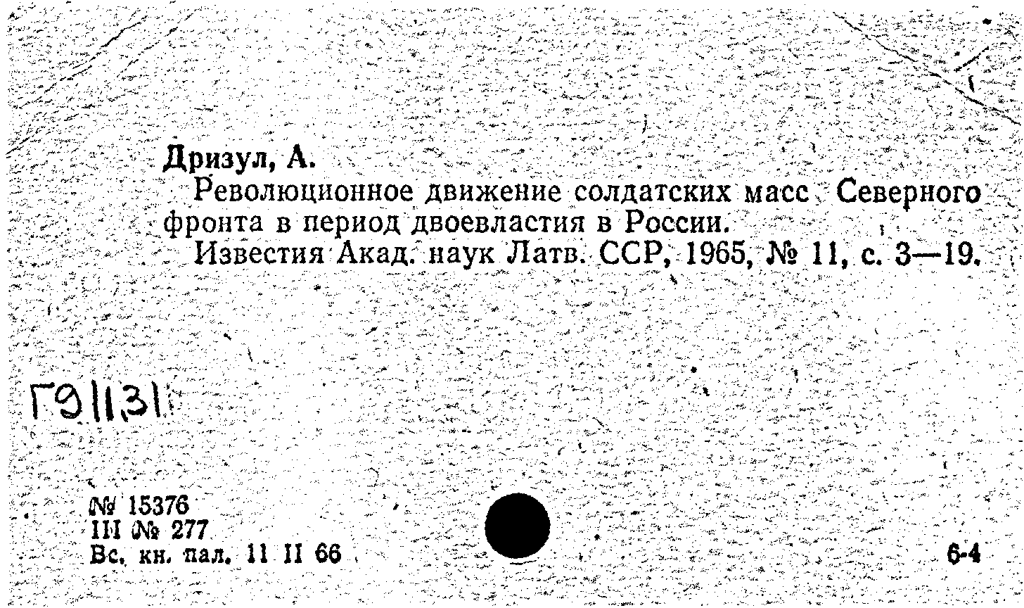 Статья: Революционное движение солдатских масс Северного фронта в период двоевластия в России. Известия Академии наук Латвийской ССР, N 11 1965: N 11 1965