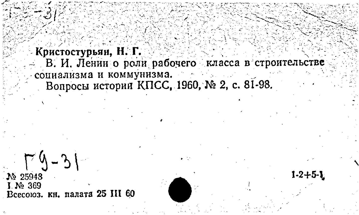 Статья: В. И. Ленин о роли рабочего класса в строительстве социализма и коммунизма. Вопросы истории КПСС, N 2 1960: N 2 1960