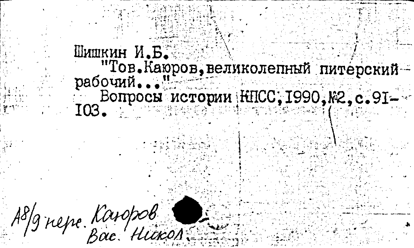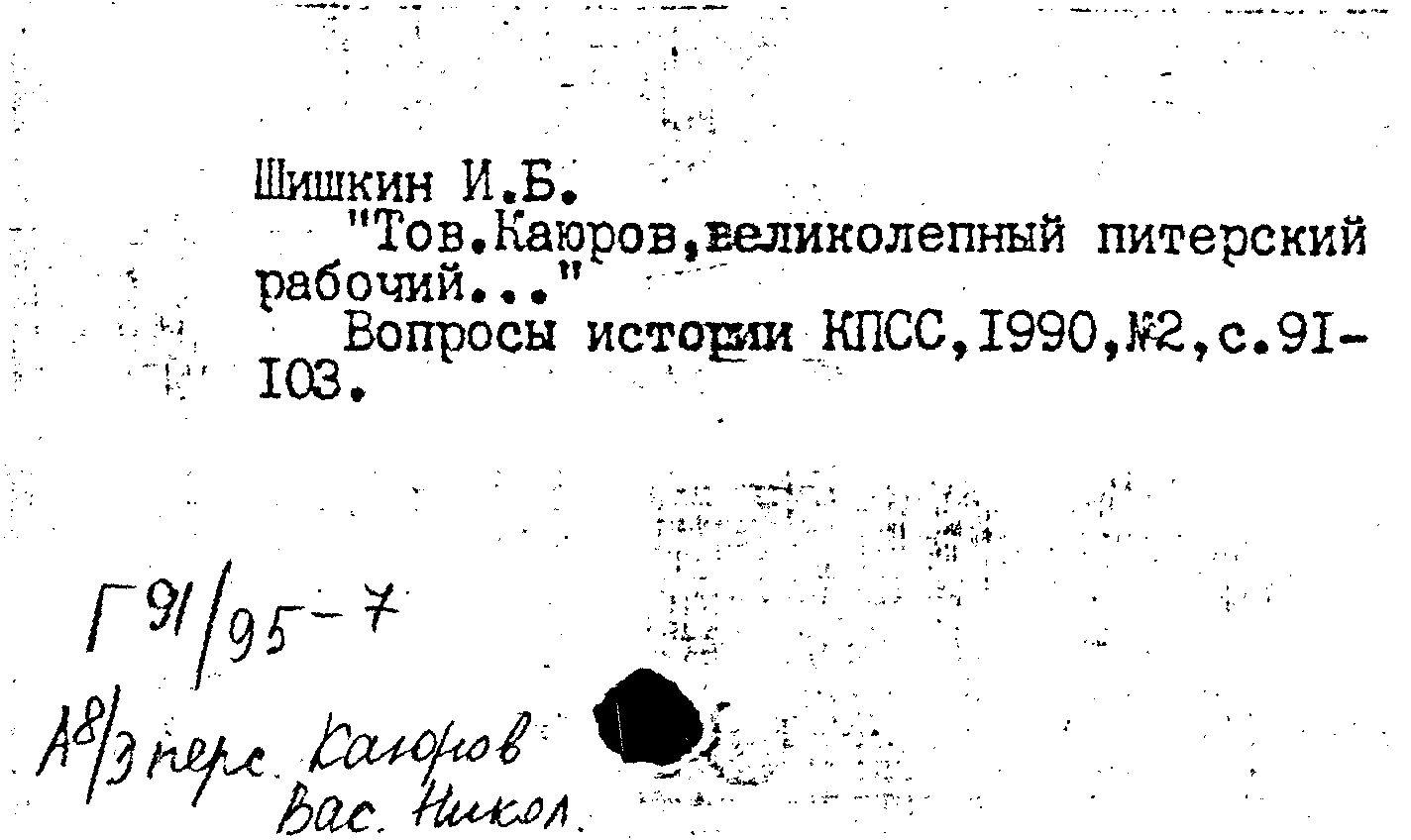 Статья: Тов. Каюров, великолепный питерский рабочий.... Вопросы истории КПСС, N 2 1990: N 2 1990