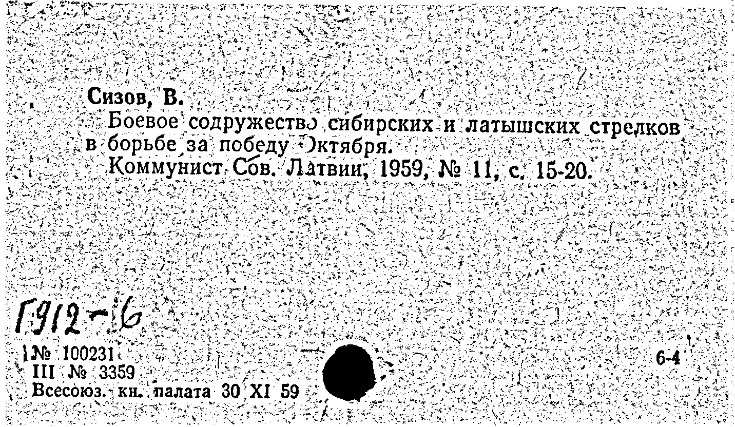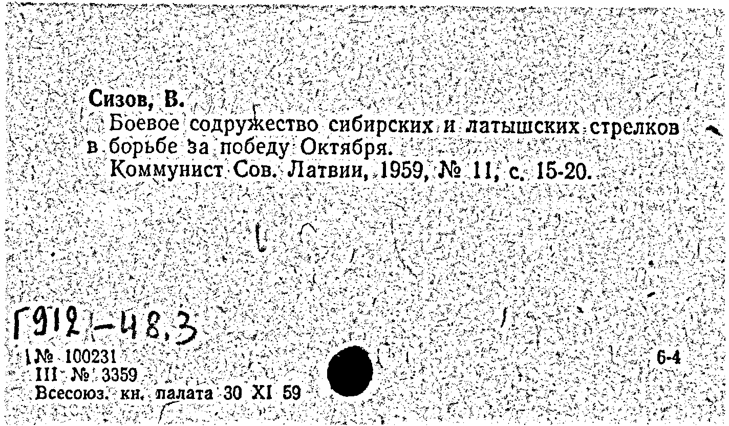 Статья: Боевое содружество сибирских и латышских стрелков в борьбе за победу Октября. Коммунист Советской Латвии, N 11 1959: N 11 1959