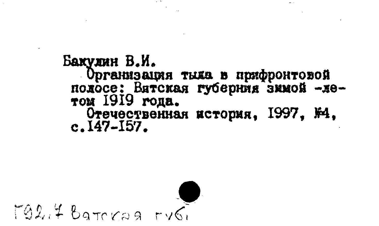 Статья: Организация тыла в прифронтовой полосе: Вятская губерния зимой-летом 1919 года. Отечественная история, № 4 /1997: № 4 /1997