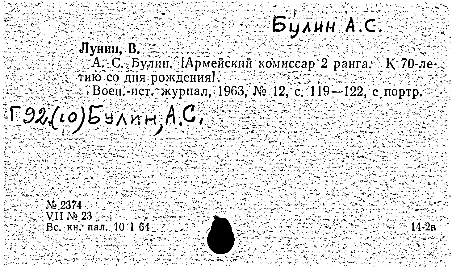 А. С. Булин. [Армейский комиссар 2 ранга]. Военно-исторический журнал, N 12 1963: N 12 1963