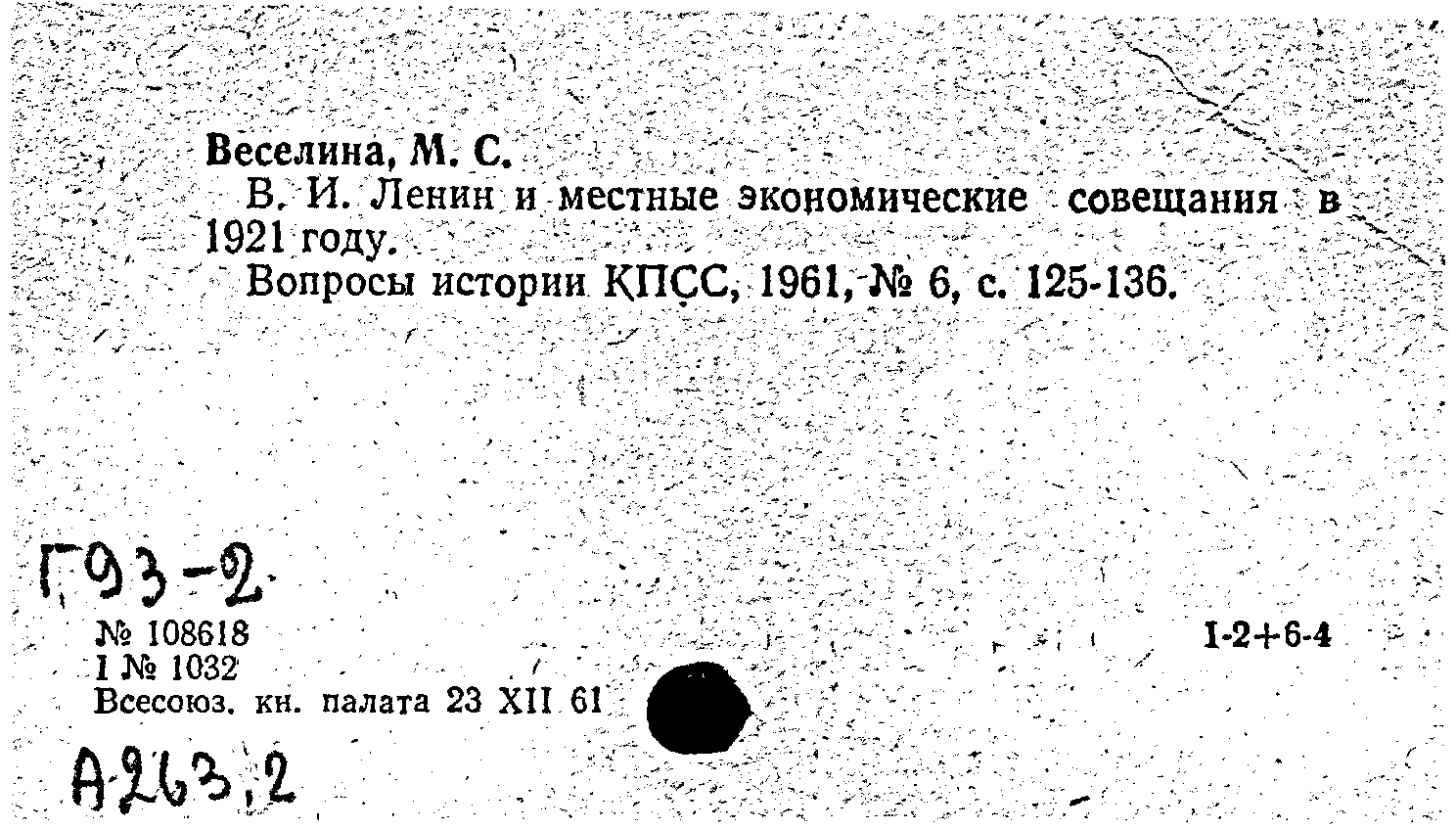 Статья: В. И. Ленин и местные экономические совещания в 1921 году. Вопросы истории КПСС, N 6 1961: N 6 1961