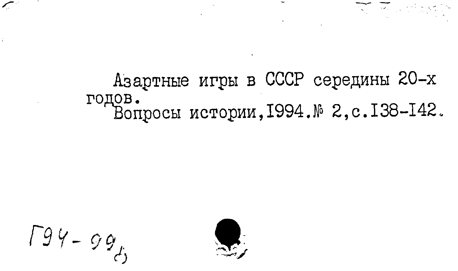 Статья: Азартные игры в СССР середины 20-х. Вопросы истории, № 2 /1994: № 2 /1994