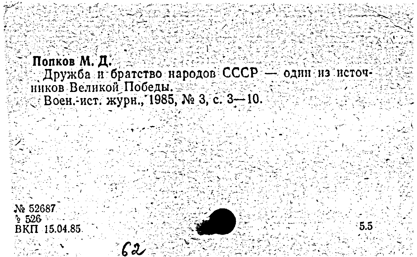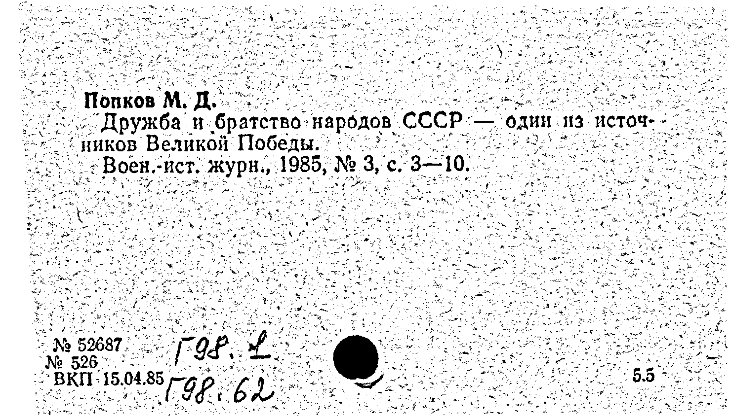 Статья: Дружба и братство народов СССР - один из источников Великой Победы. Военно-исторический журнал, N 3 1985: N 3 1985