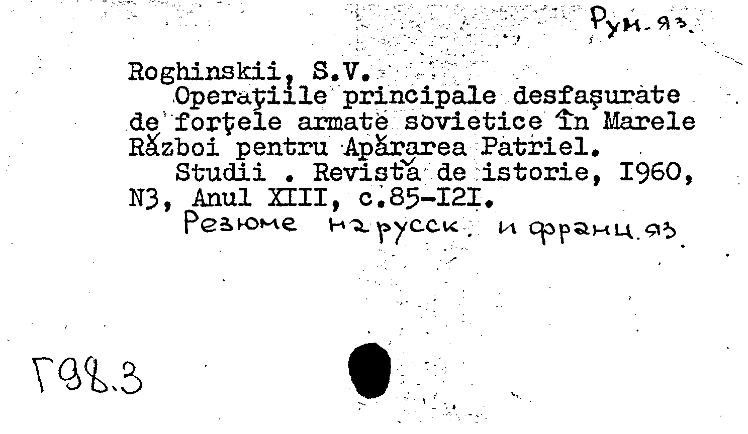 Статья: Operatiile principale desfasurate de fortele armate sovietice in Marele Razboi pentru Apararea Patriel. Studii. Revista de istorie, N 3, Anul 13 1960: N 3, Anul 13 1960