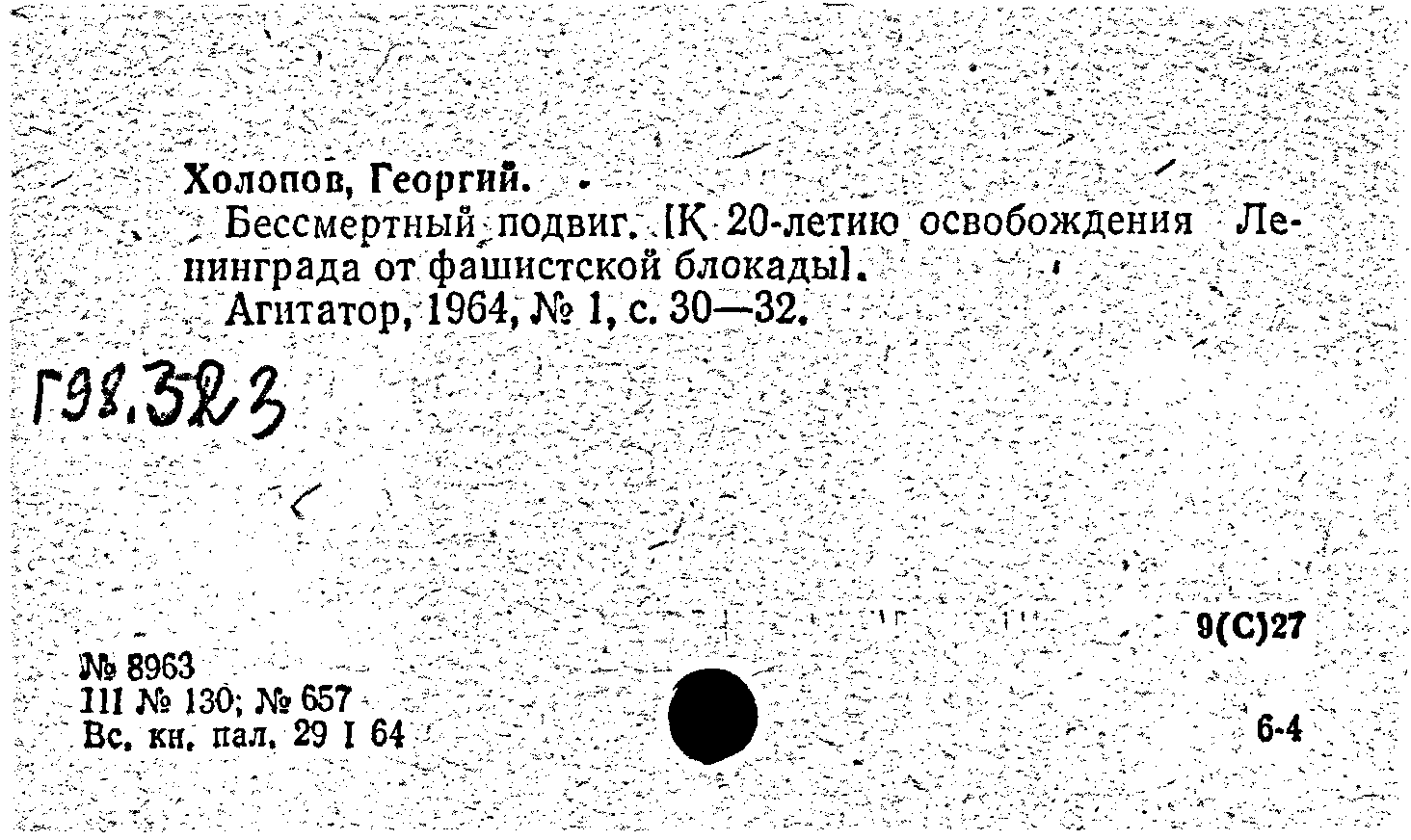 Статья: Бессмертный подвиг. Агитатор. Журнал ЦК КПСС, N 1 1964: N 1 1964