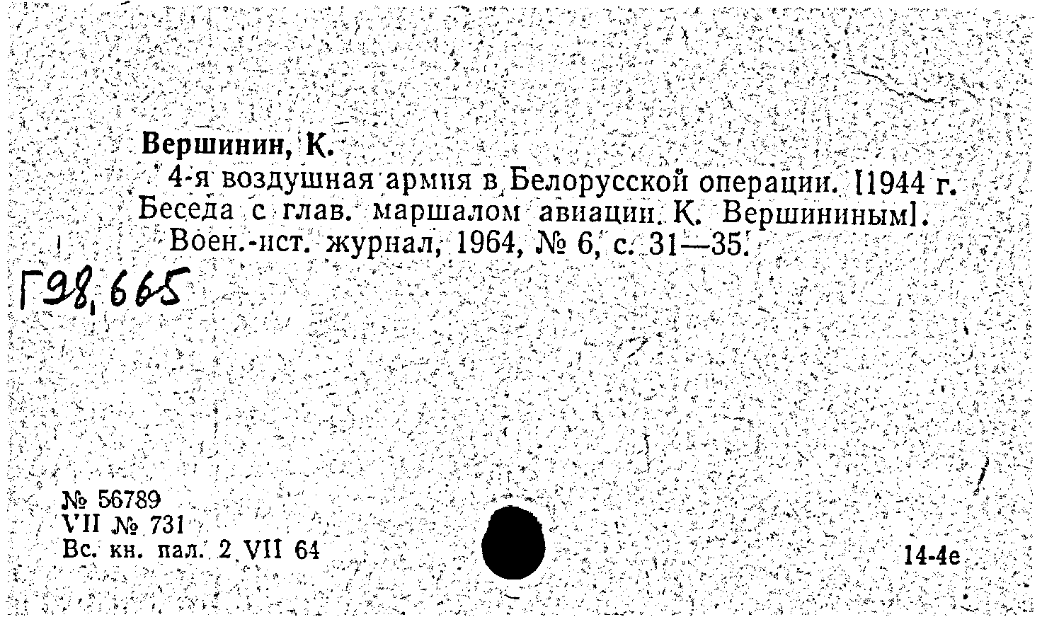 4-я воздушная армия в Белорусской операции. Военно-исторический журнал, N 6 1964: N 6 1964