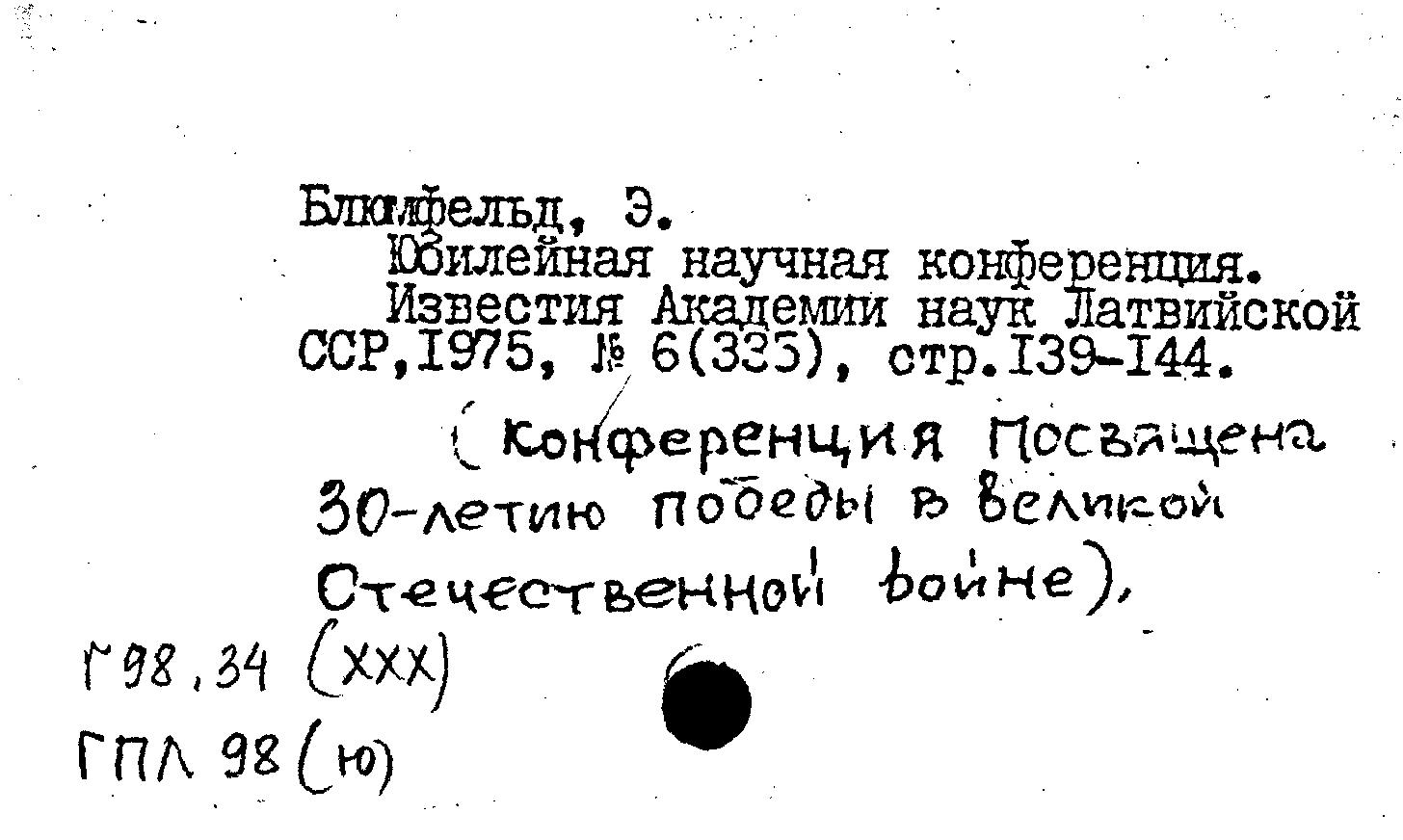 Юбилейная научная конференция. Известия Академии наук Латвийской ССР, N 6 (335) 1975: N 6 (335) 1975