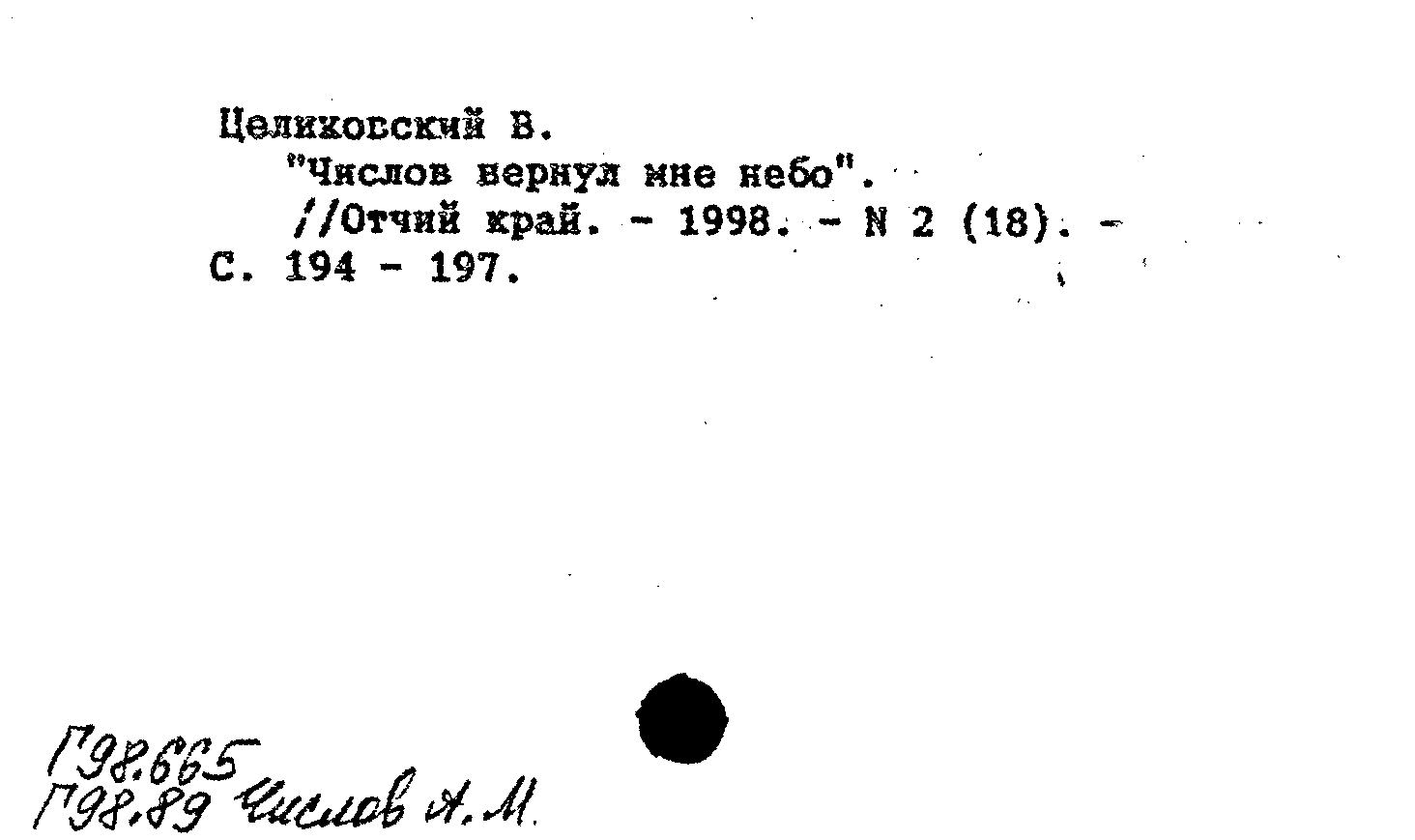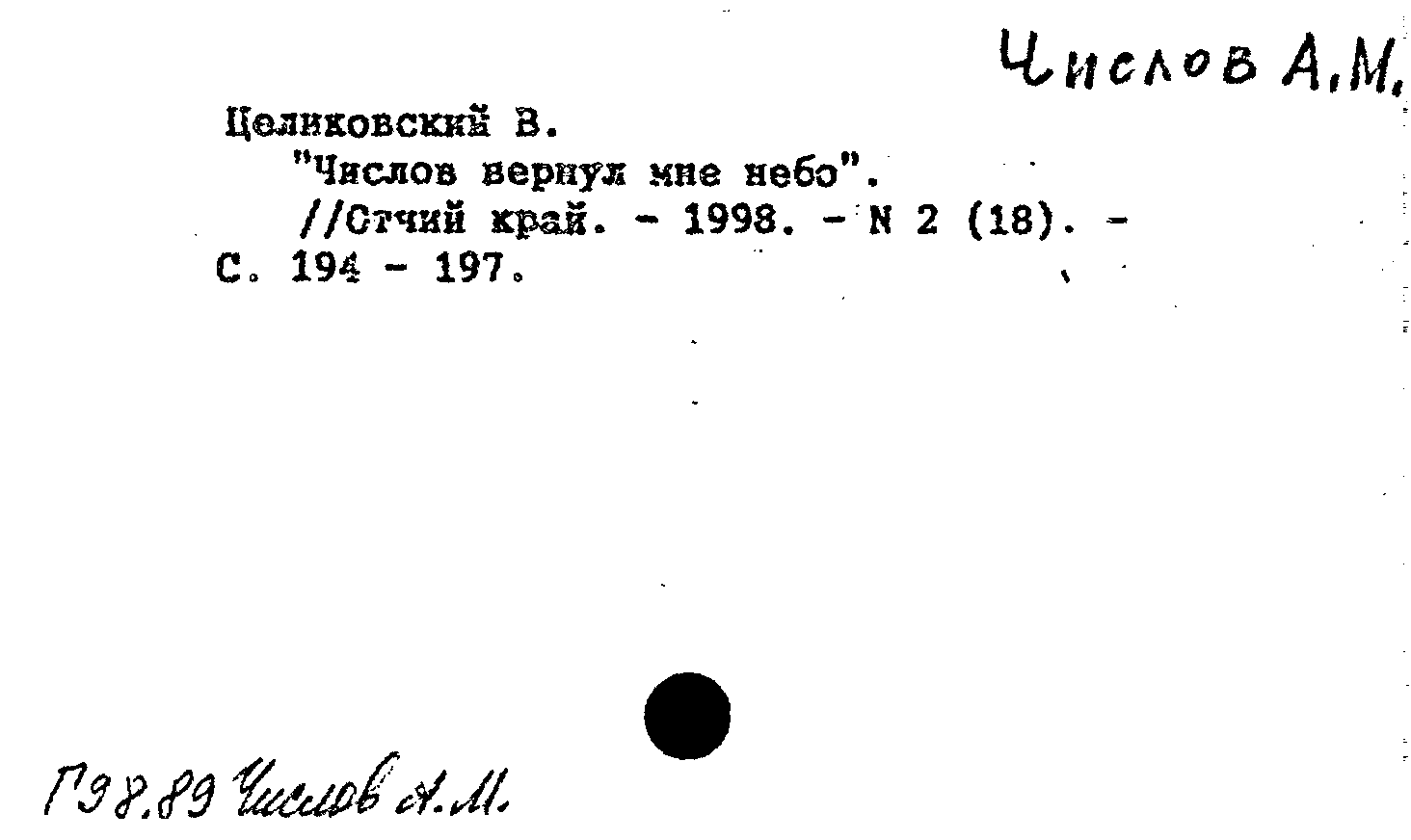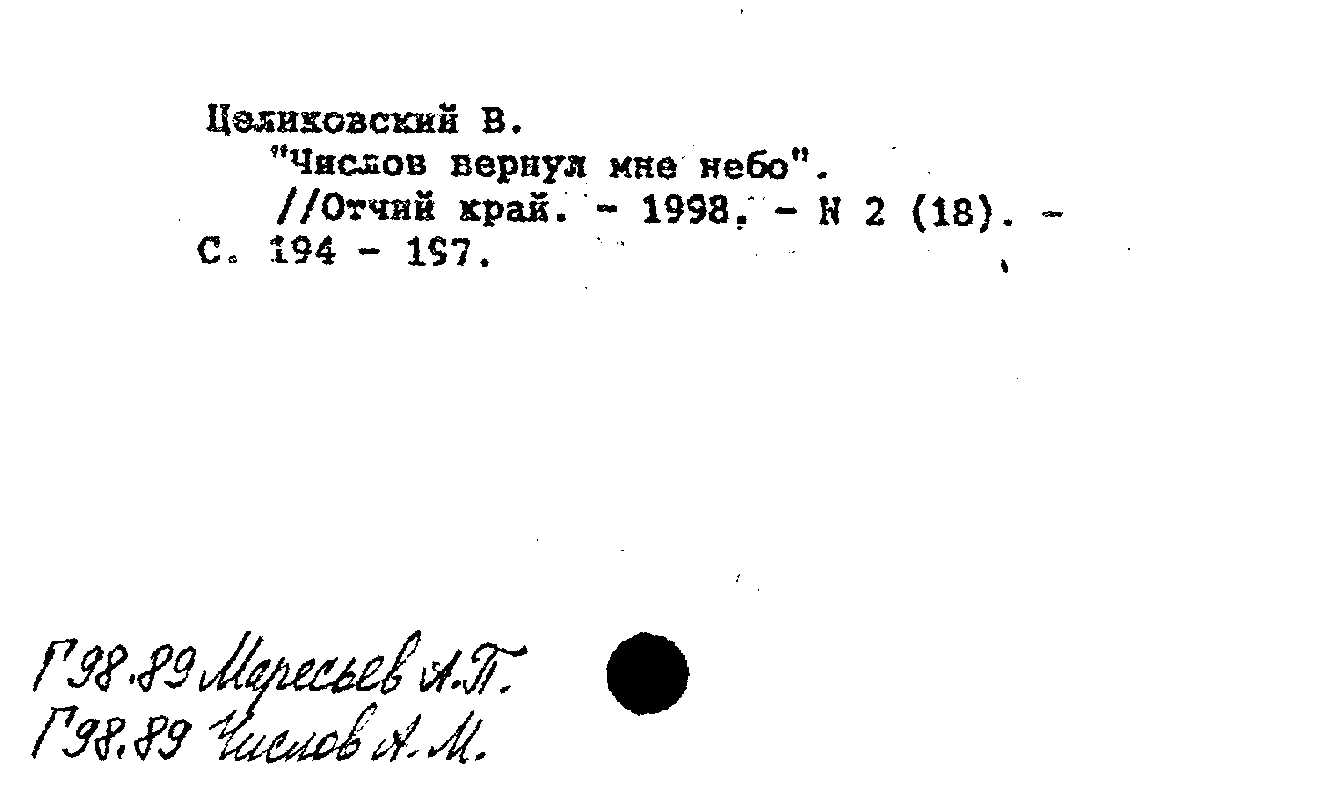 "Числов вернул мне небо". Отчий край, N 2 (18) 1998: N 2 (18) 1998