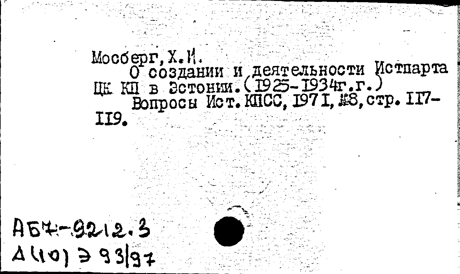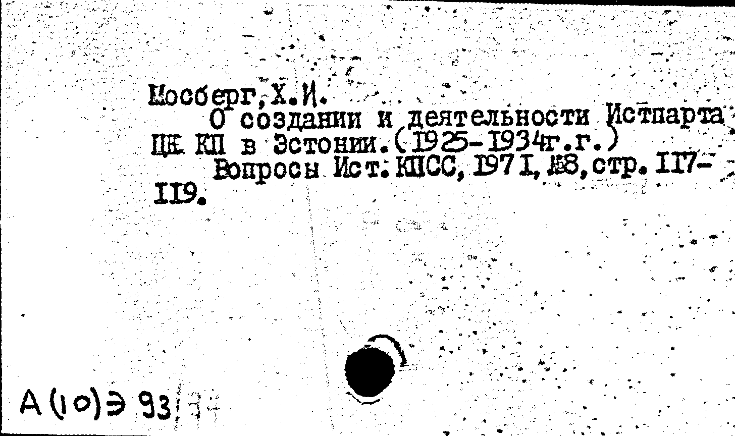 Статья: О создании и деятельности Истпарта ЦК КП Эстонии. (1925-1934 гг.). Вопросы истории КПСС, N 8 1971: N 8 1971
