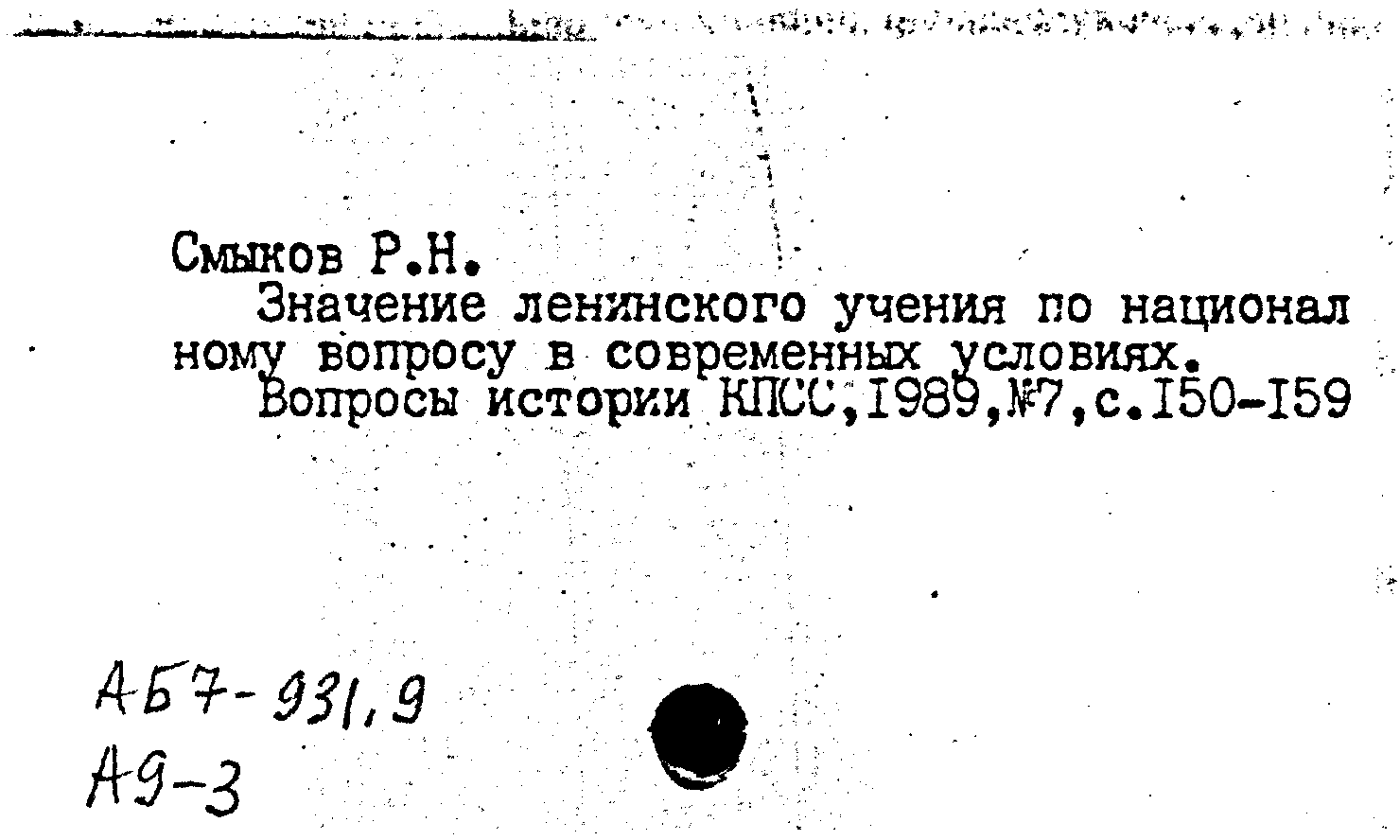Значение ленинского учения по национальному вопросу в современных условиях. Вопросы истории КПСС, N 7 1989: N 7 1989
