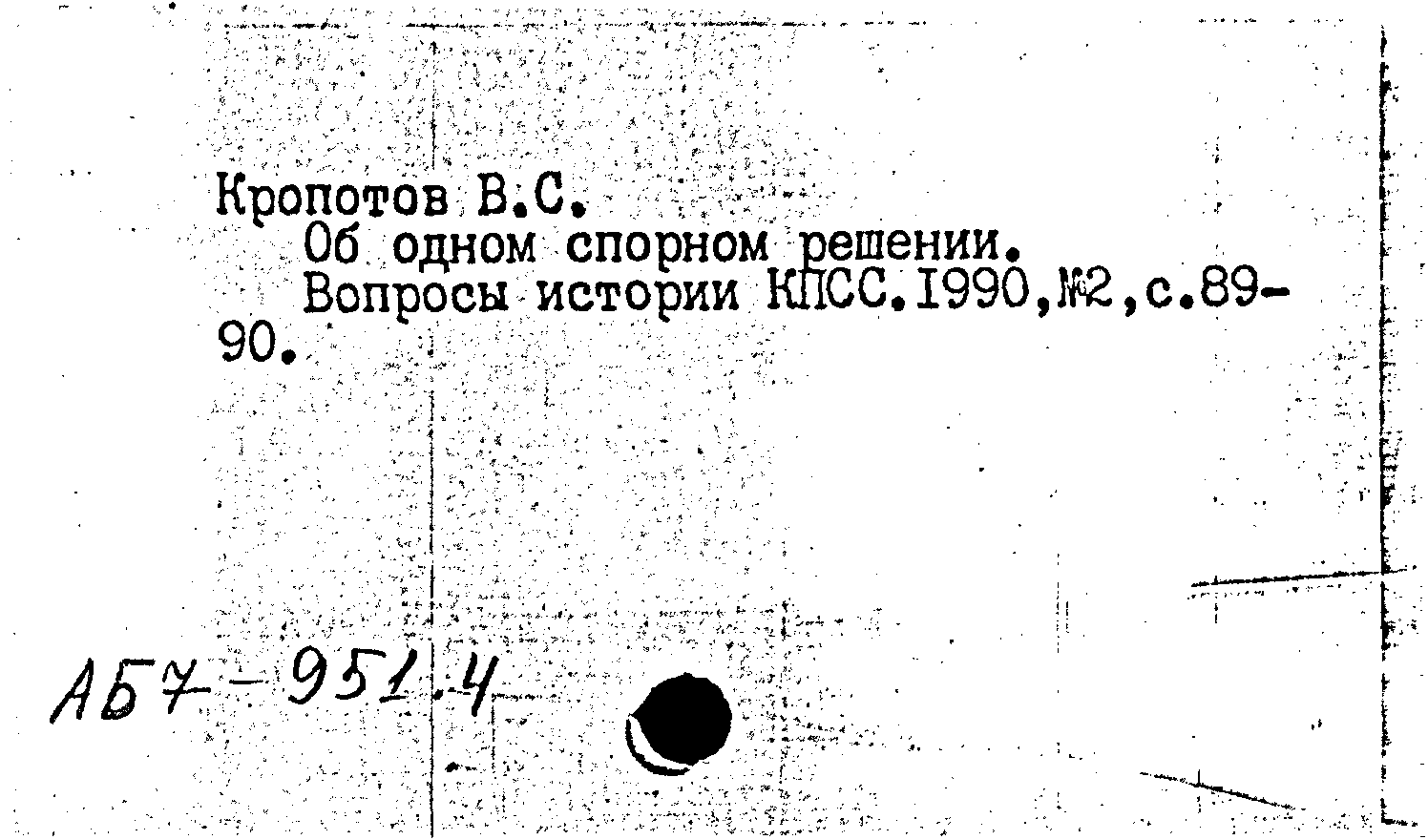 Статья: Об одном спорном решении. Вопросы истории КПСС, N 2 1990: N 2 1990