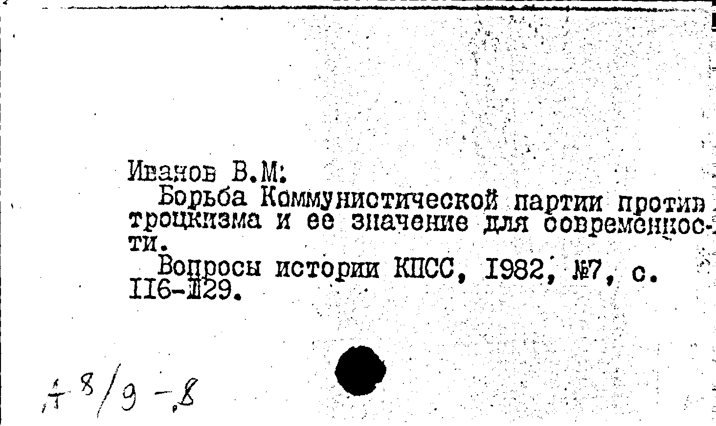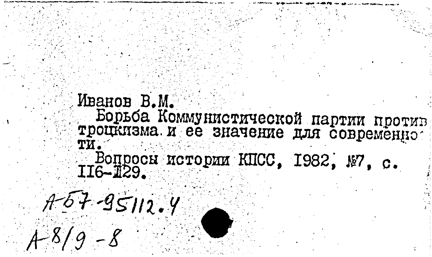 Статья: Борьба Коммунистической партии против троцкизма и ее значение для современности. Вопросы истории КПСС, N 7 1982: N 7 1982