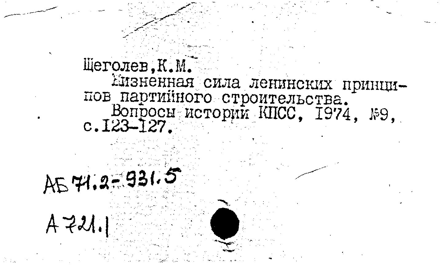 Коммунистическая партия Советского Союза (КПСС) \ Изучение отдельных проблем истории КПСС и отд. партийных документов \ Изучение партийного строительства (44)