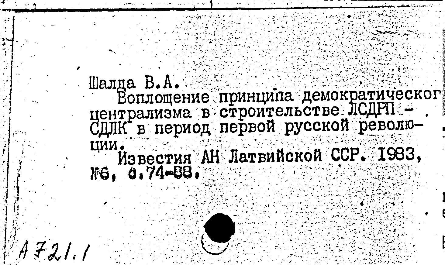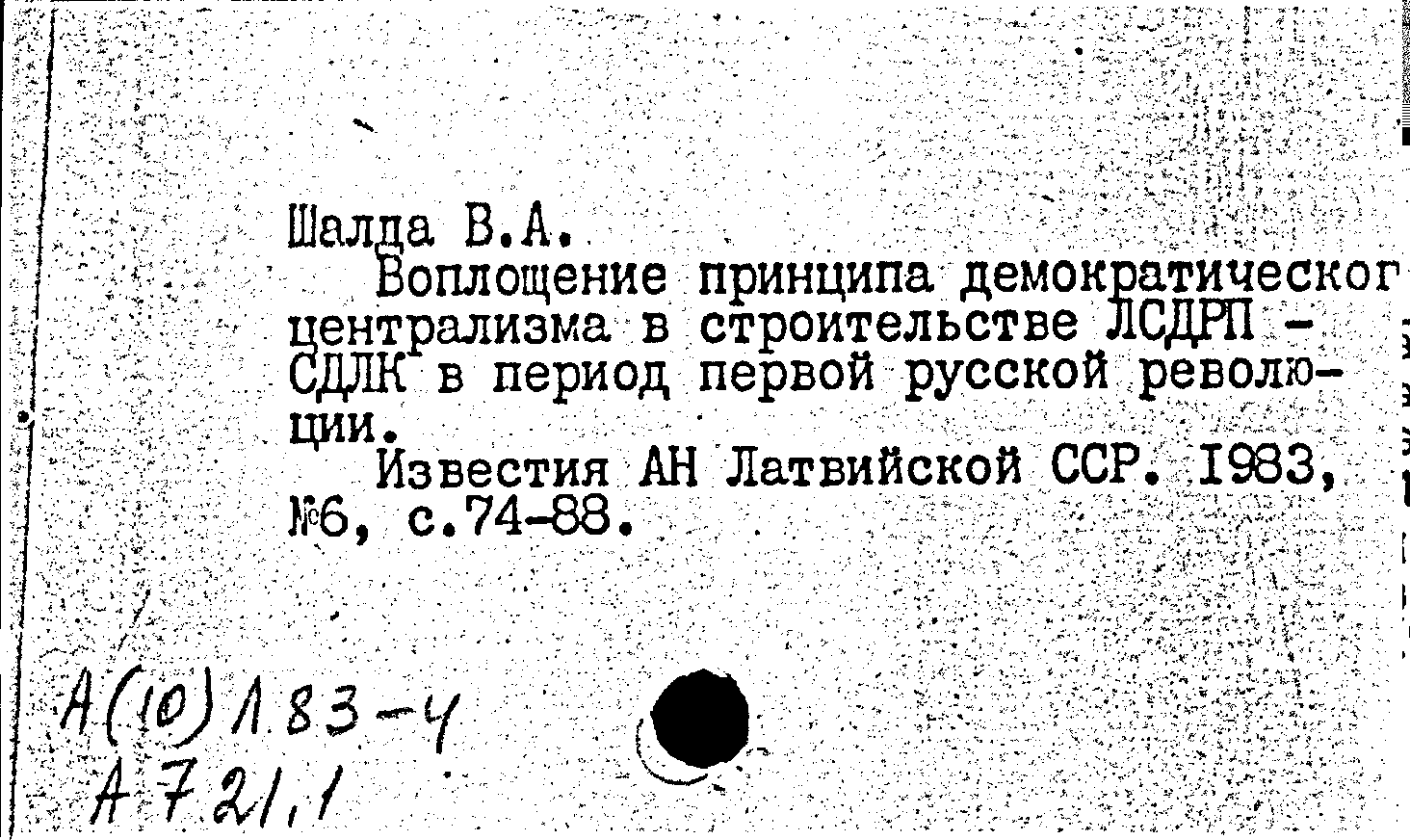 Воплощение принципа демократического централизма в строительстве ЛСДРП - СДЛК в период первой русской революции. Известия Академии наук Латвийской ССР, N 6 1983: N 6 1983