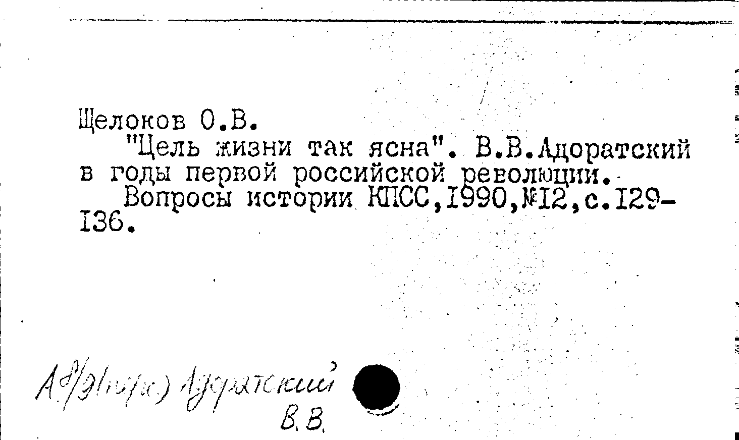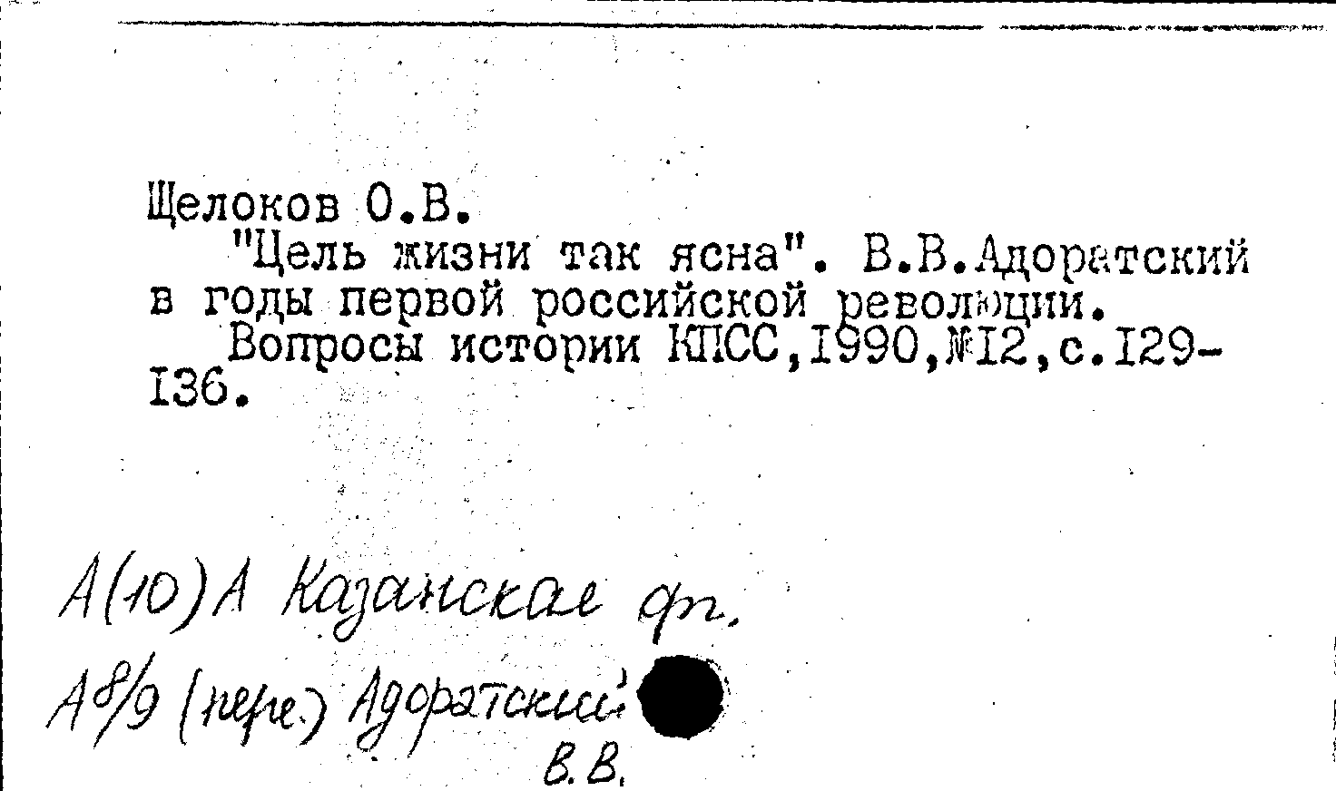 "Цель жизни так ясна". В. В. Адоратский в годы первой российской революции. Вопросы истории КПСС, N 12 1990: N 12 1990