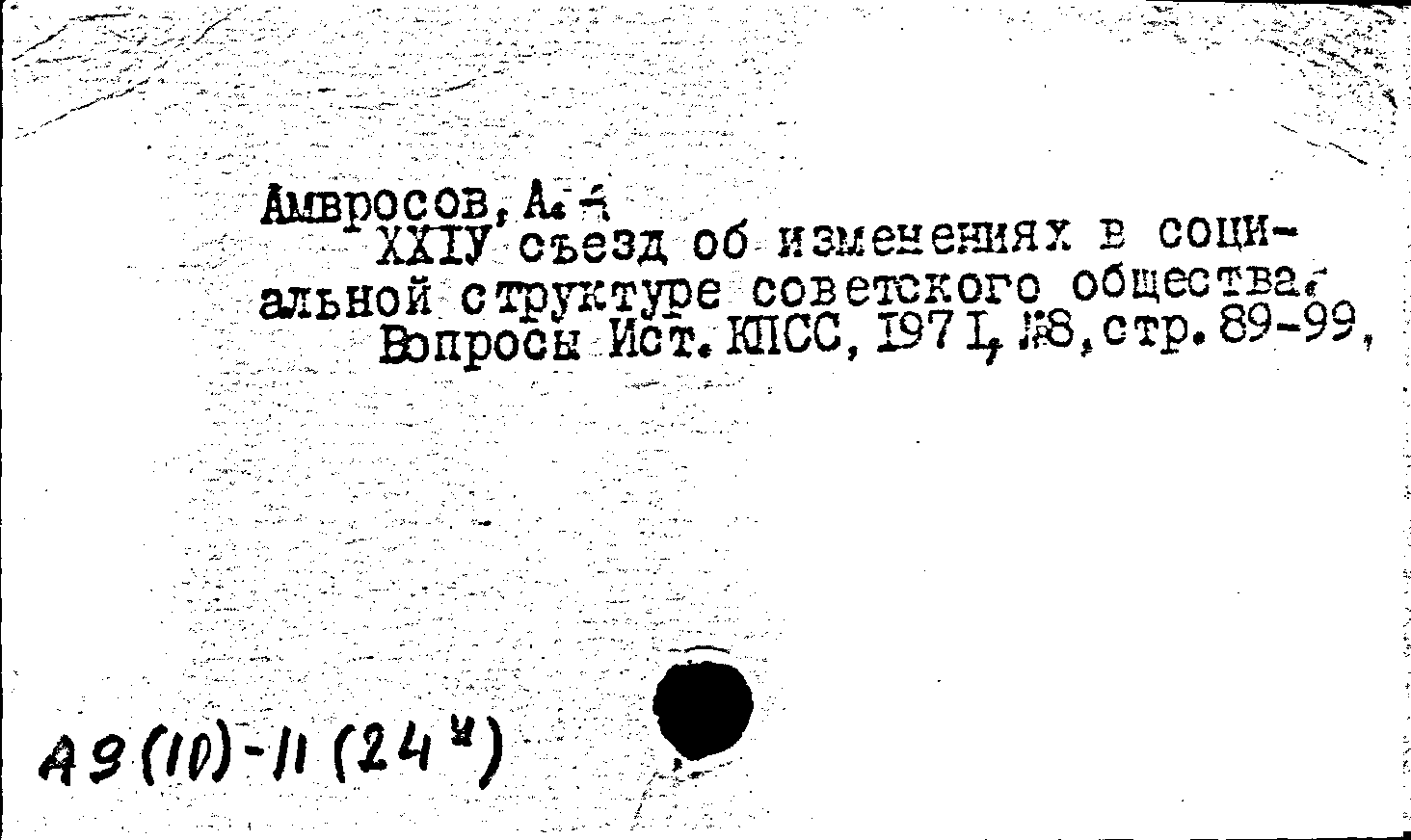 Статья: XXIV съезд об изменениях в социальной структуре советского общества. Вопросы истории КПСС, N 8 1971: N 8 1971